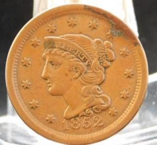 Liberty Capped 1852 One Cent US Mint Circulated (R14)