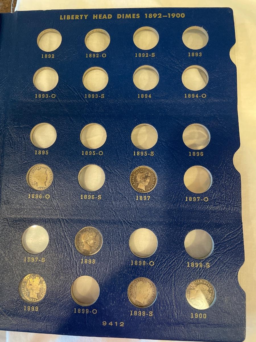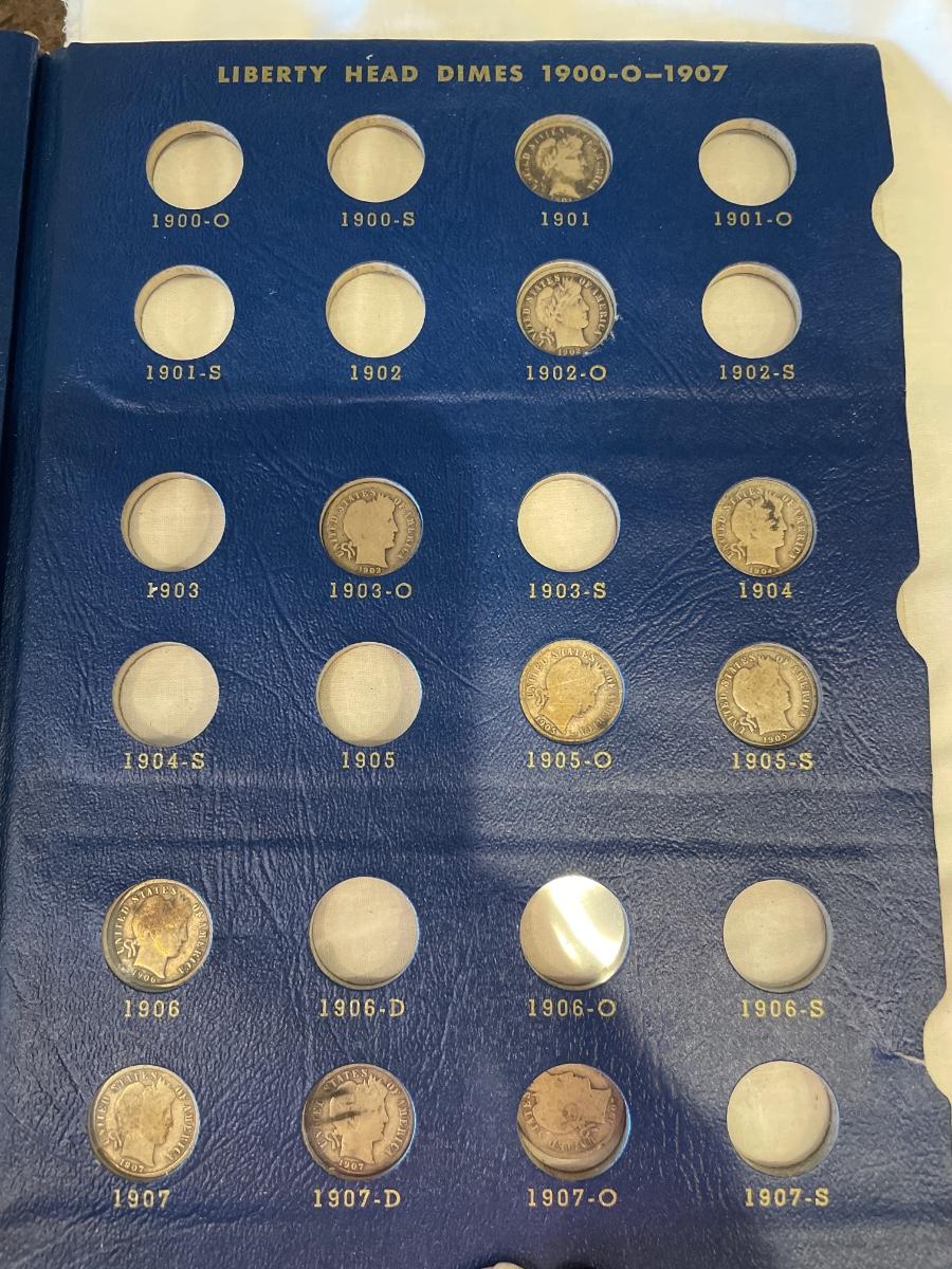 Includes 34 dimes in collection all different dates. One of these coins is a key date.