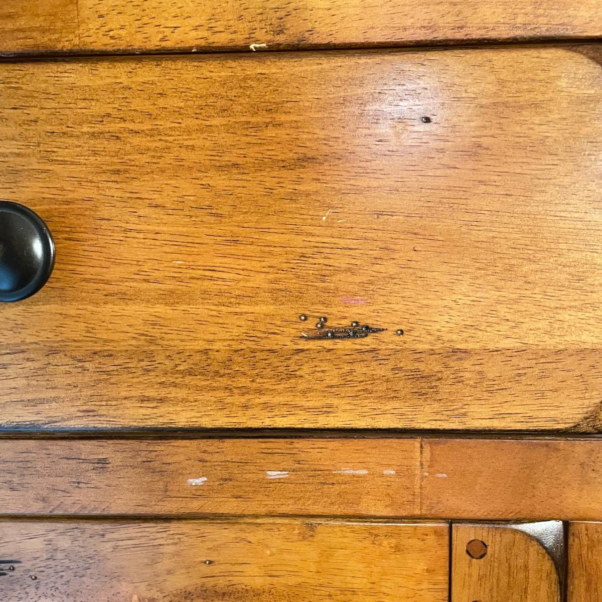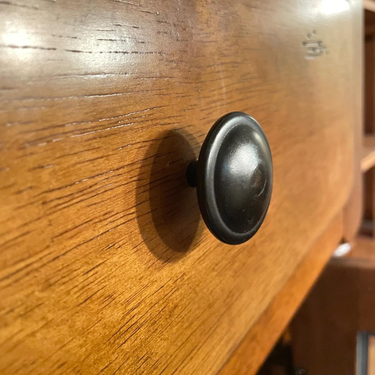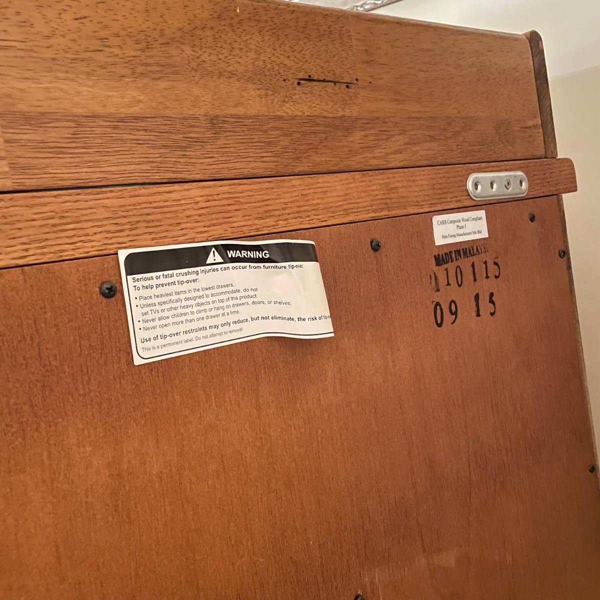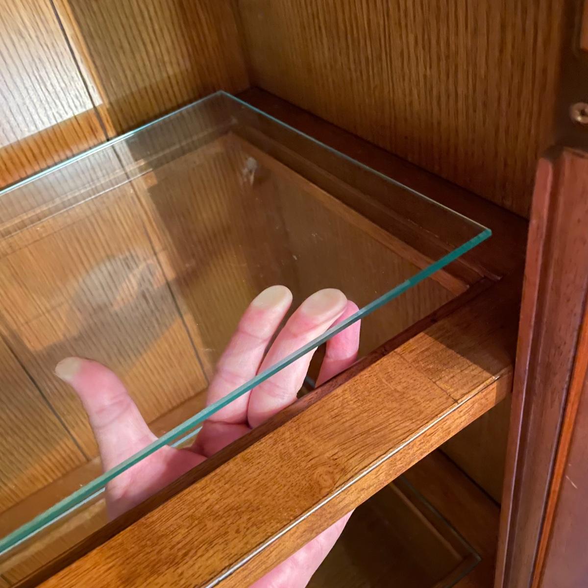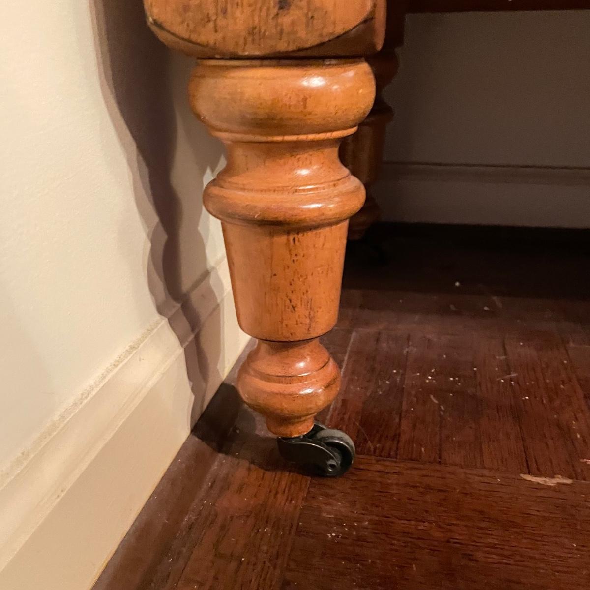 Stunning Liberty Furniture hutch with bubble glass doors and two drawers on casters. Doors and drawers have metal pulls. Hutch has light sockets, they did not turn on when prompted, it is possible the bulbs are burnt out. Hutch rolls, but lubricant on casters may help it roll smoother. Piece appears to be mostly solid wood, it measures 48” x 18” x 65.5”H. There is a decently sized indentation on the back side, see image. Winning bidder must bring assistance to help move and load this item due to its weight and/or size. Local pick up only. Pick Up Thursday only.