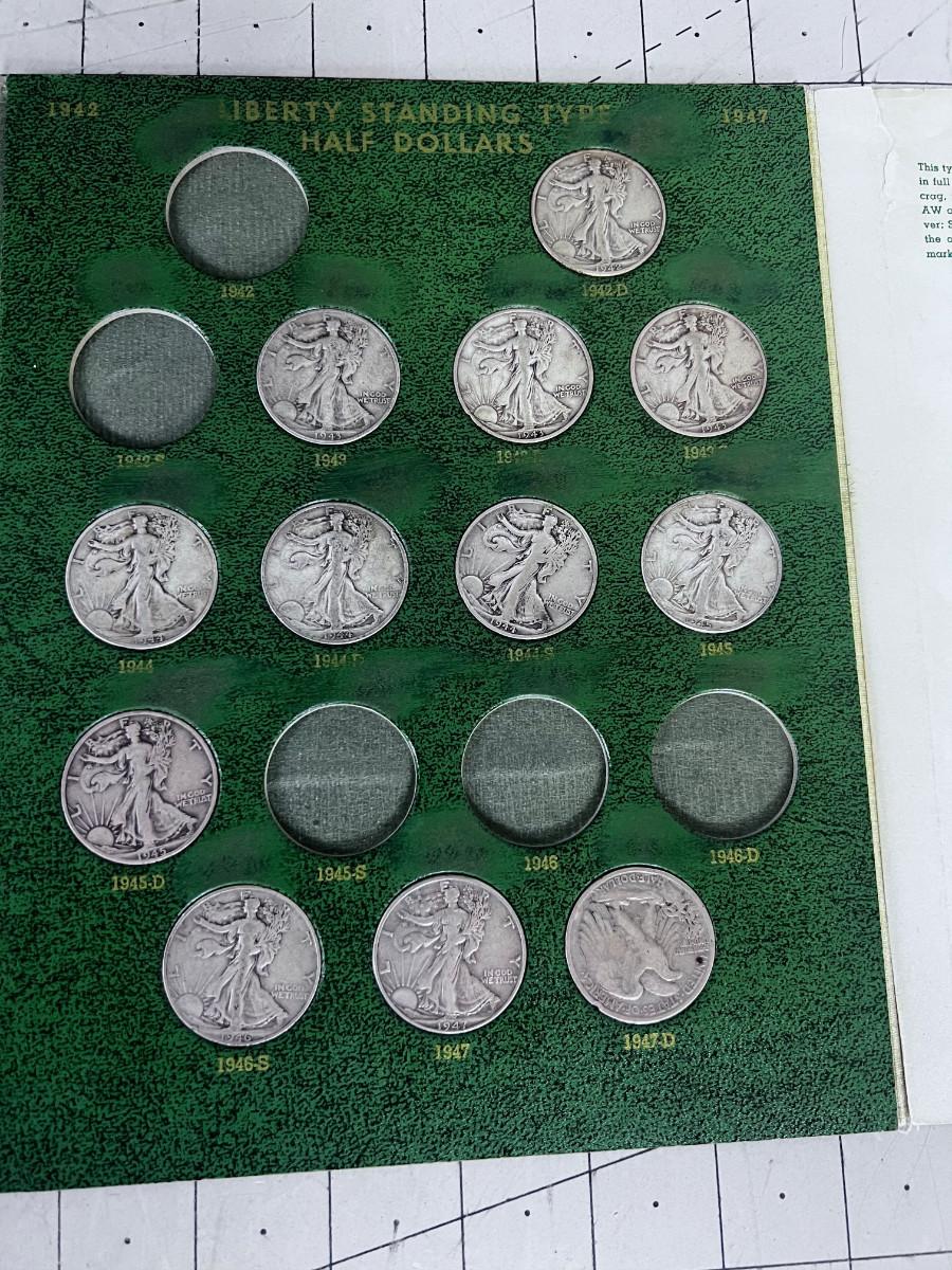 Liberty Half Dollar Collection 1917 to 1947 (50) Silver Half Dollars in a Book