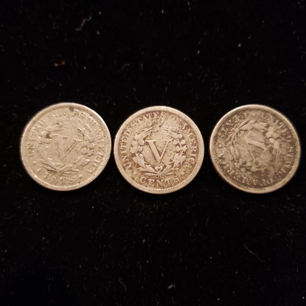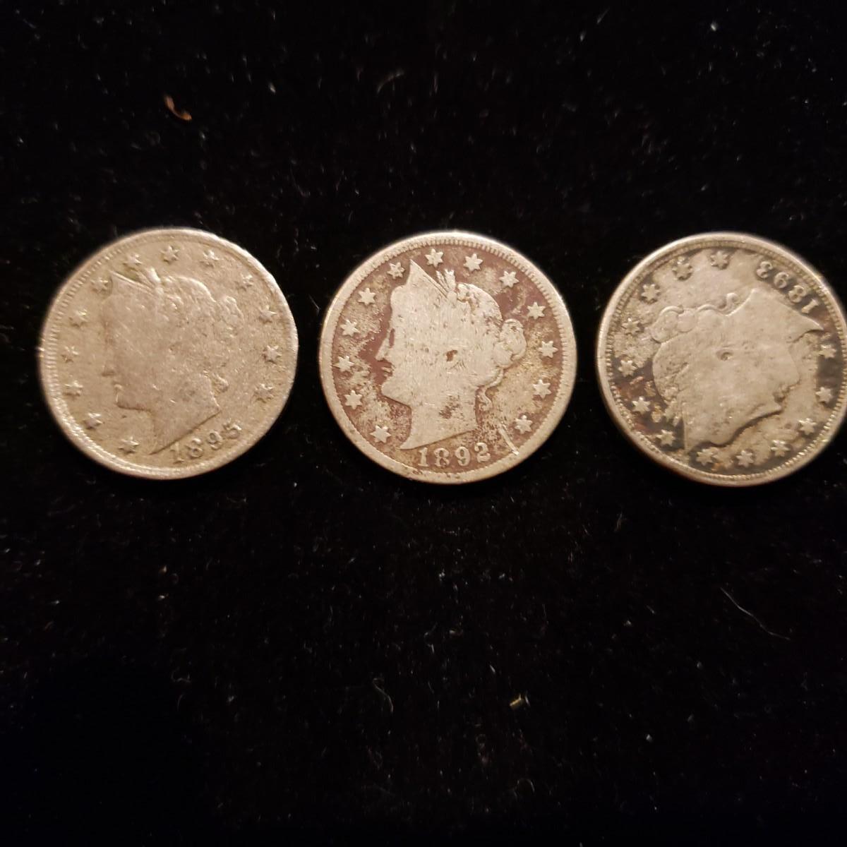 Liberty Nickels 1892, 1893, 1895 Lot of 3 coins