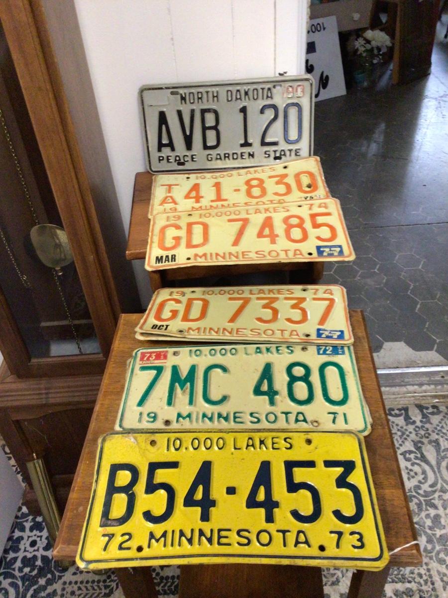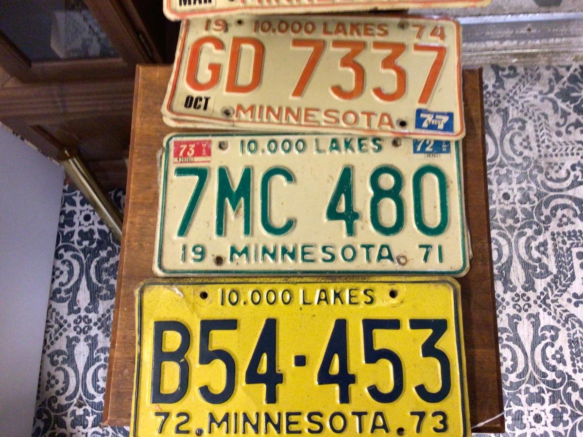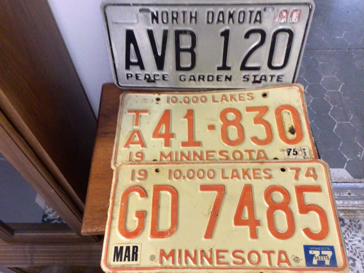There are three matching sets of license plates and three single license plates. Total 12 plates, all between 1971 and 1980. 11 Minnesota 1North Dakota