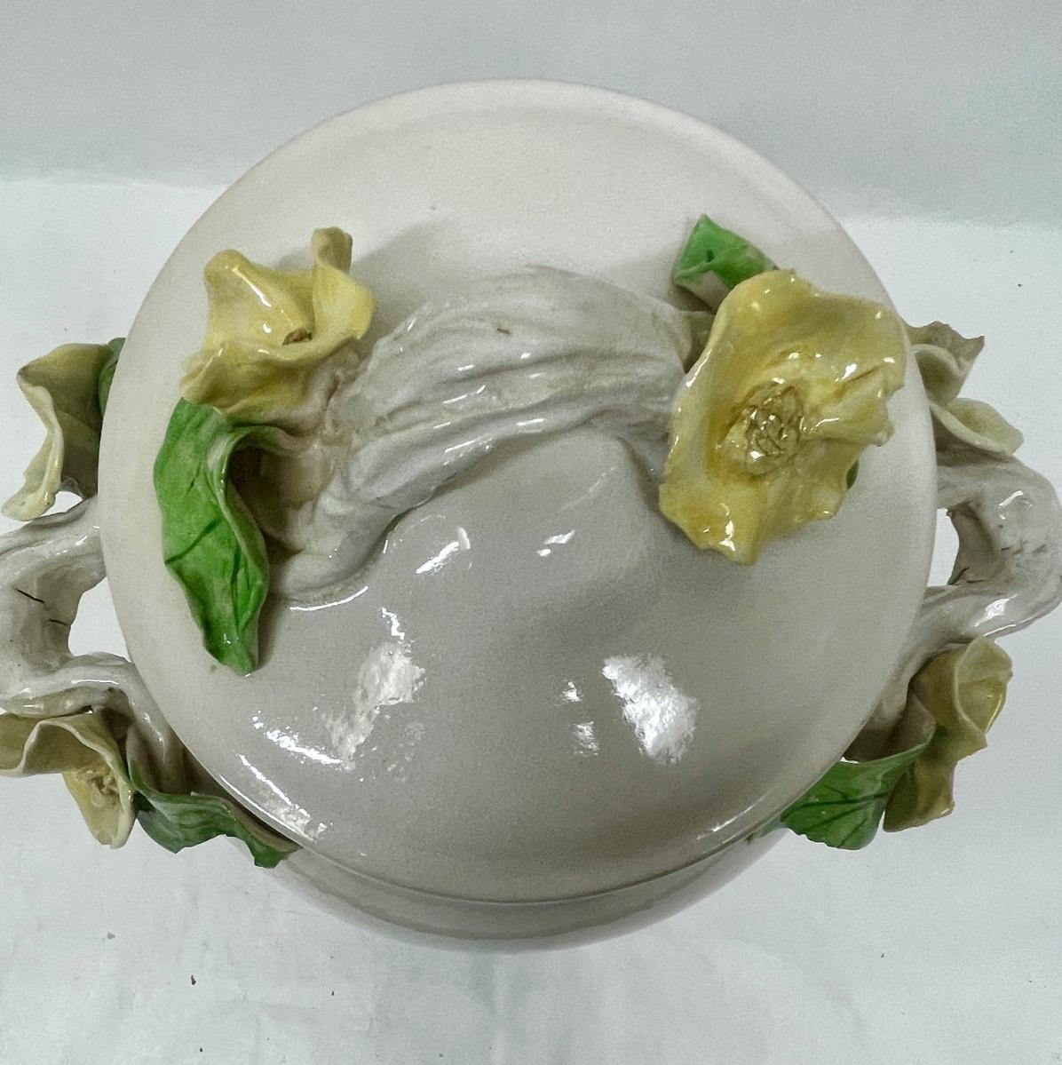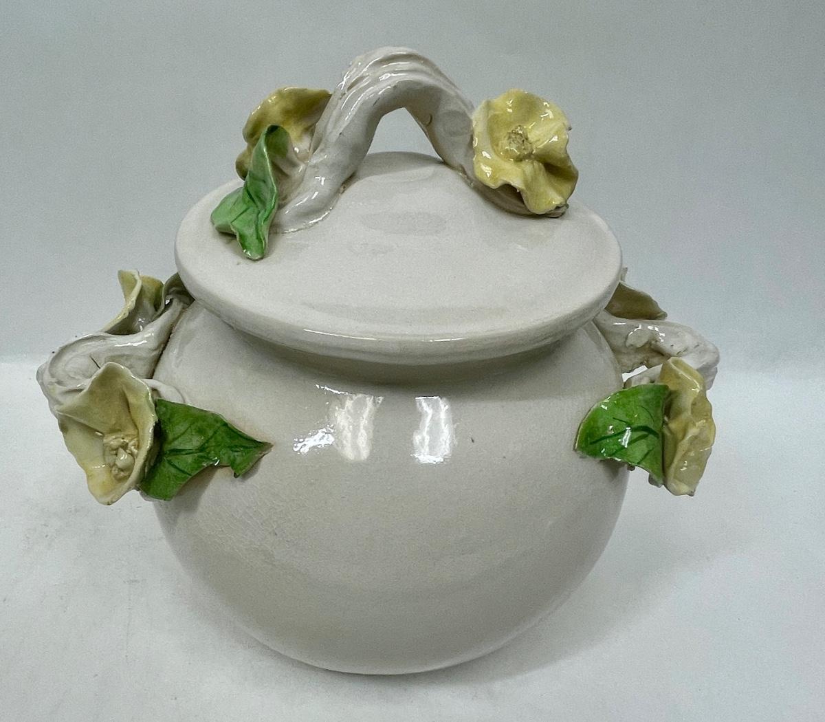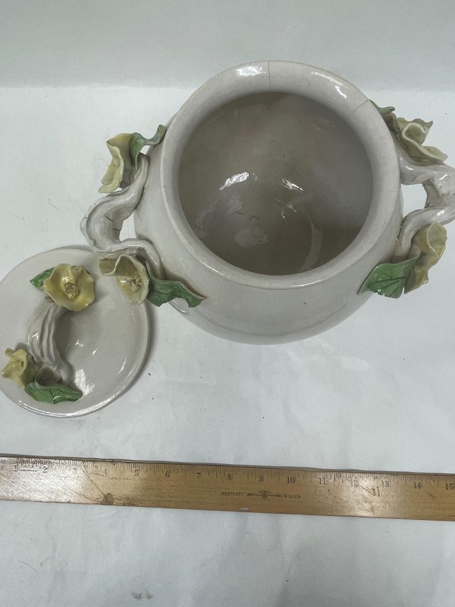 Lidded Ceramic Jar Capodemonte style yellow rose trim