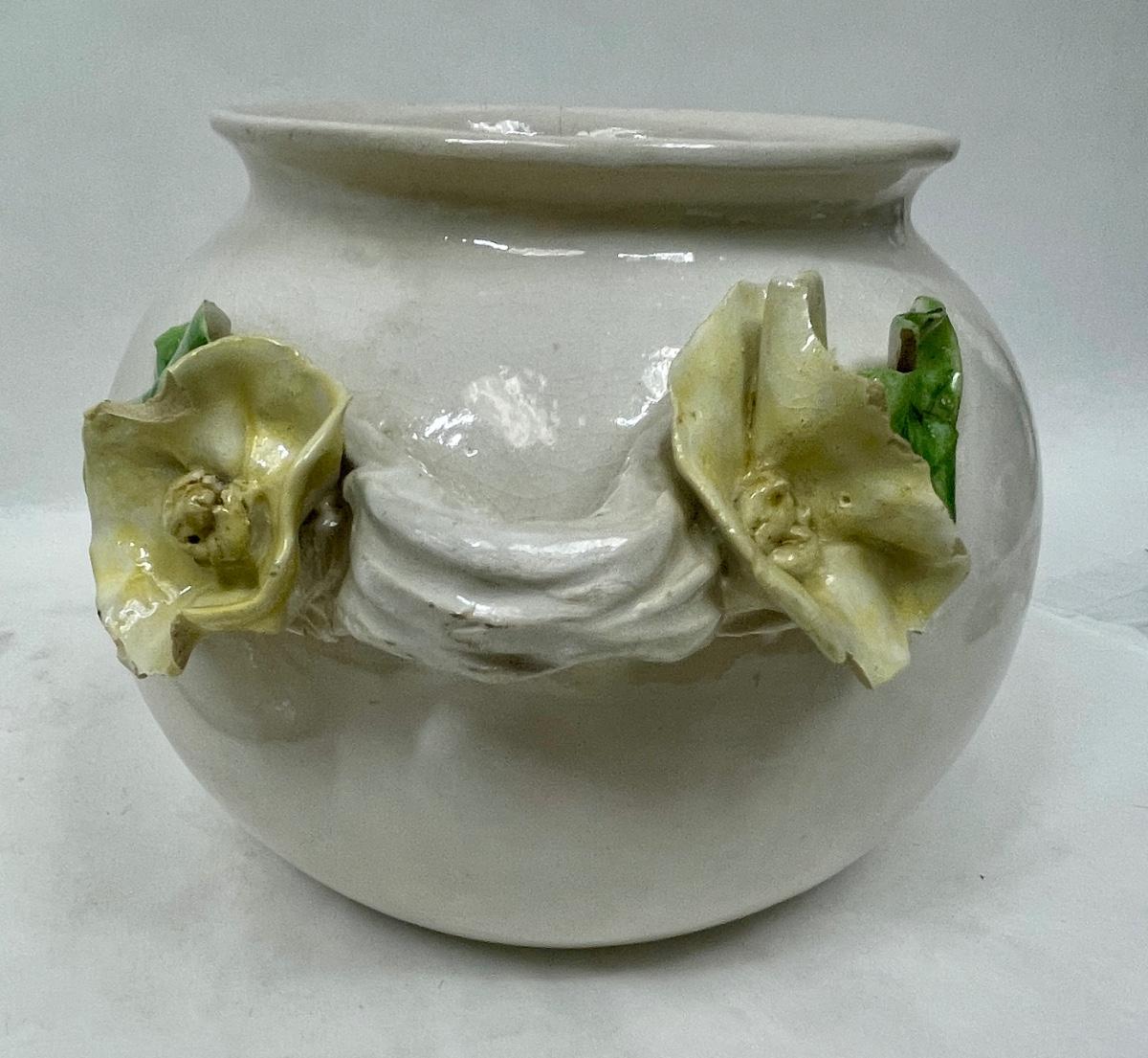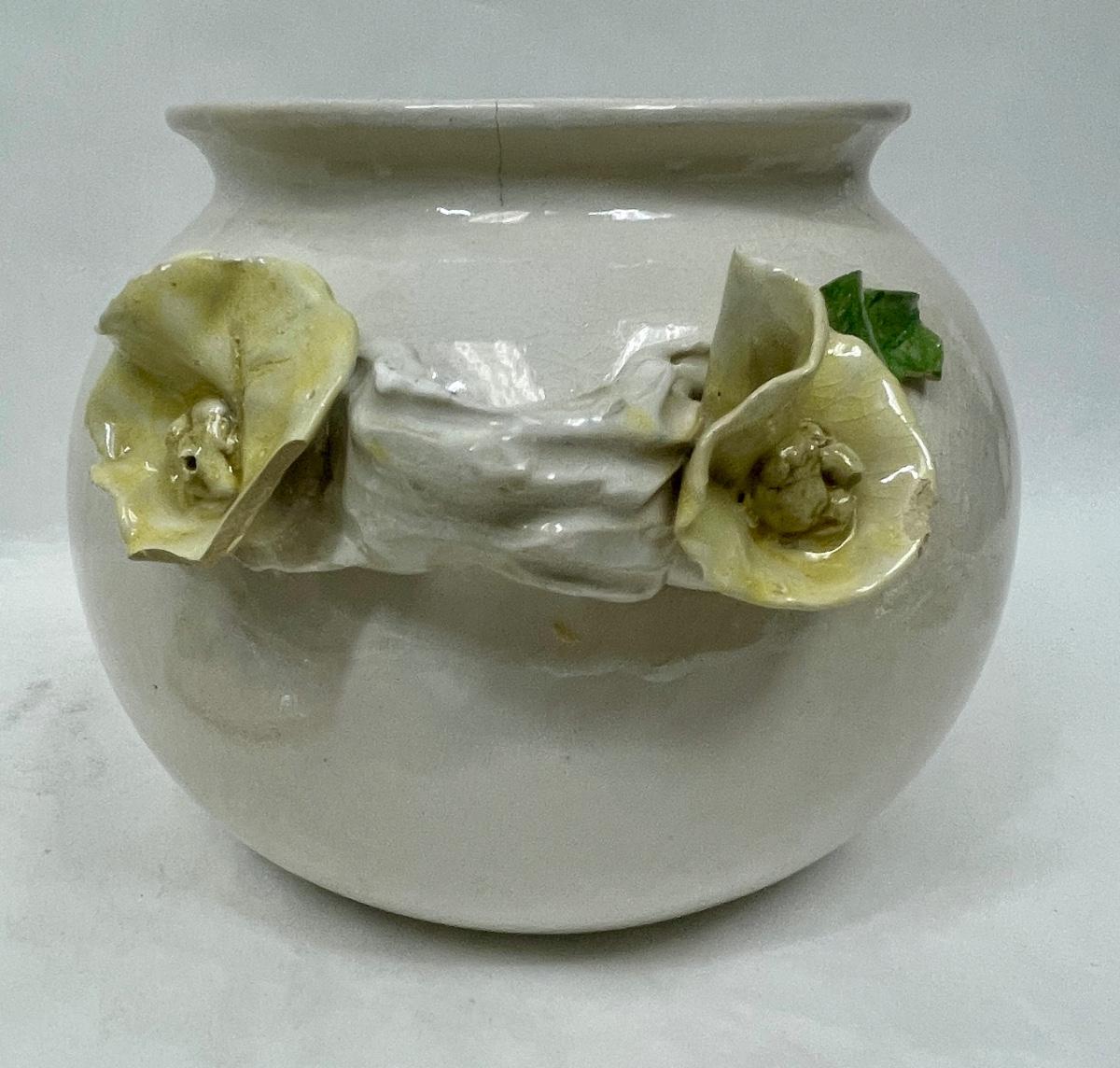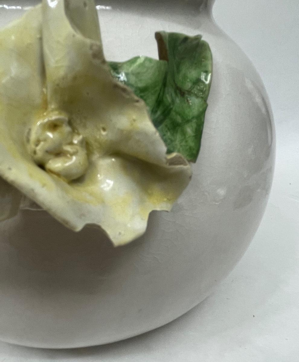 Lidded Ceramic Jar Capodemonte style yellow rose trim