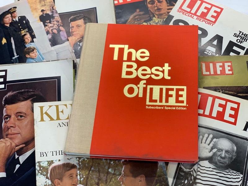 1973 The Best of Life book and various magazines, such as JFK, Picasso, fair condition.
