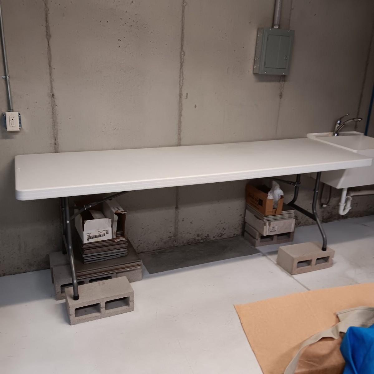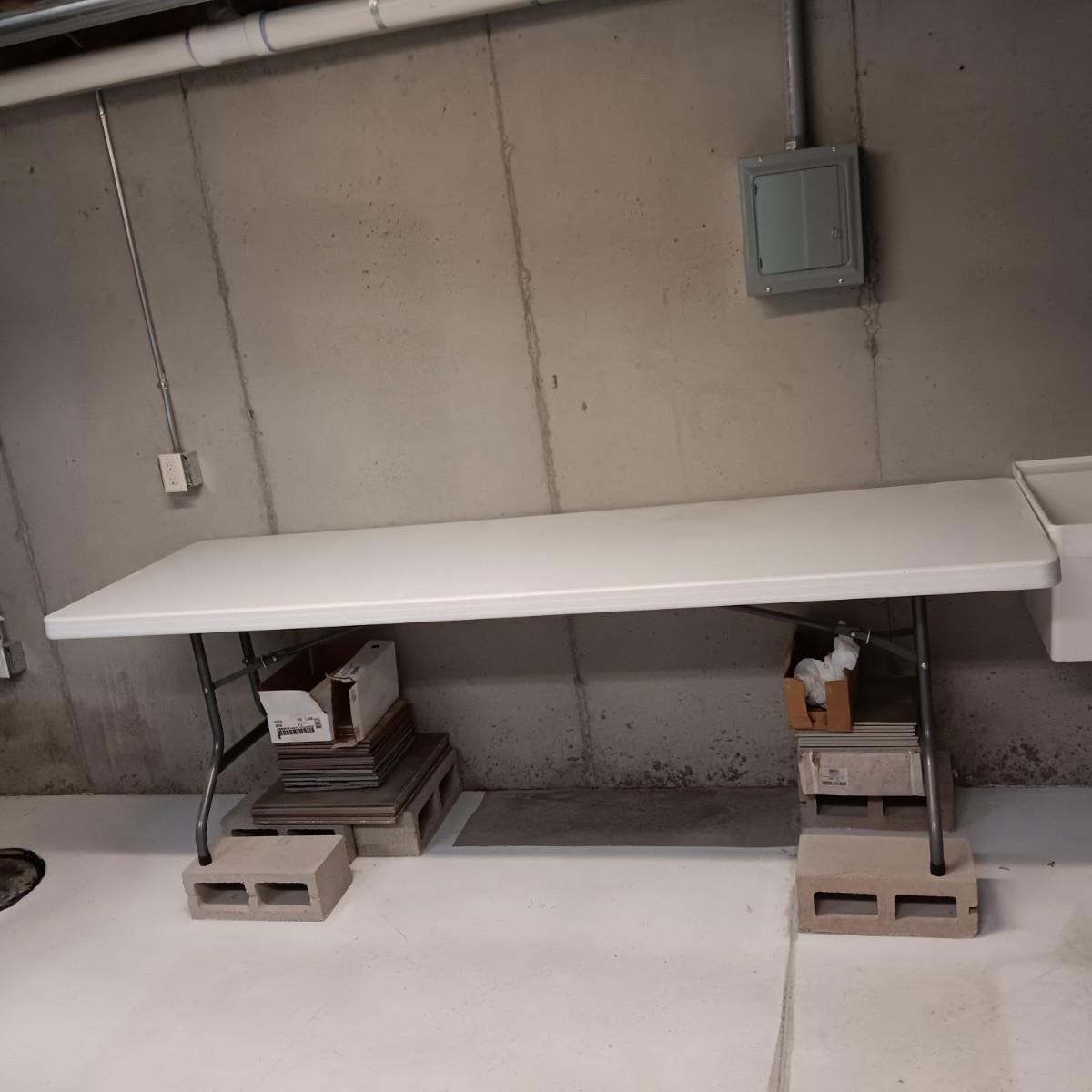 LIFETIME 8 FOOT TABLE WITH FOLDING LEGS