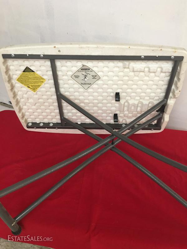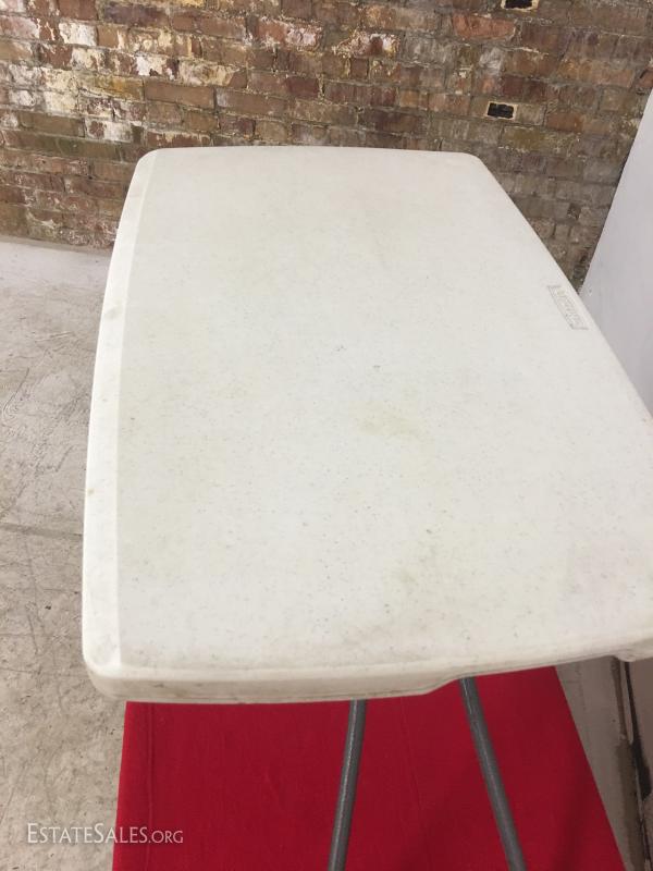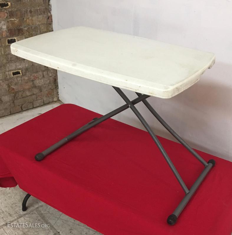 Table is in good working condition, adjusts from 21 to 28" tall, 19" 30" top, folds flat.