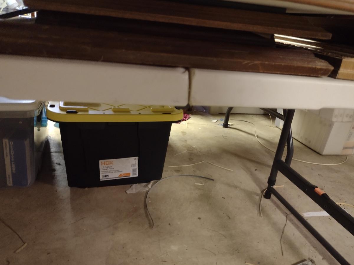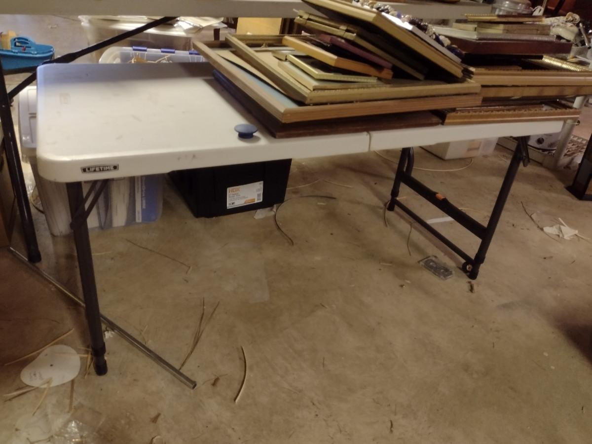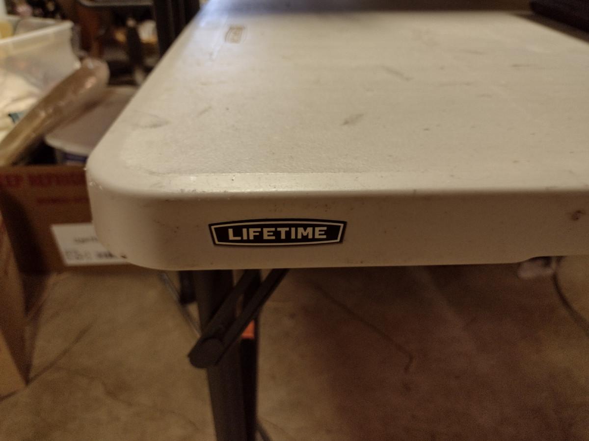 Lifetime Folding Table- 4 Feet x 2 Feet. Folding legs, and folds in half. Top of table may have staining.