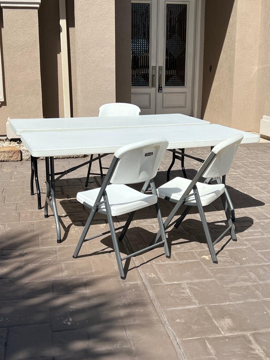 LIFETIME ~ Pair (2) Folding Tables & Three (3) Folding Chairs ~ *Read Details