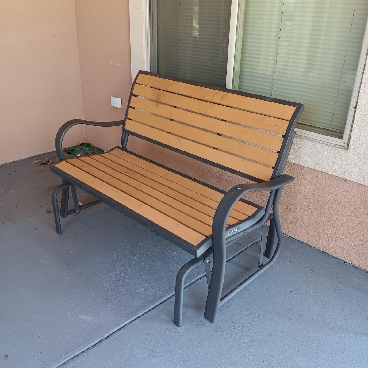 THERE ARE SMUDGES TO THE BACK AND SEAT OF GLIDER