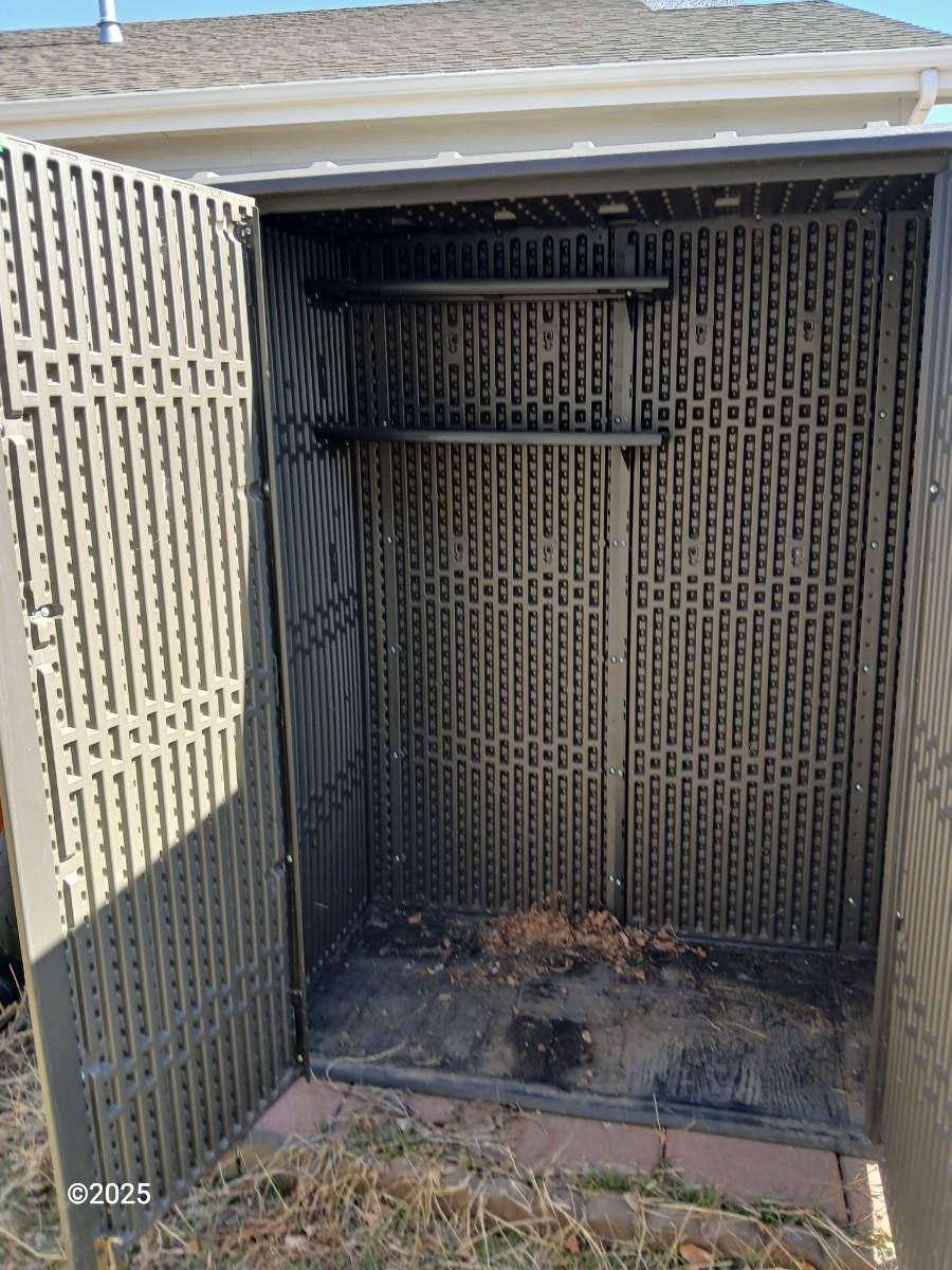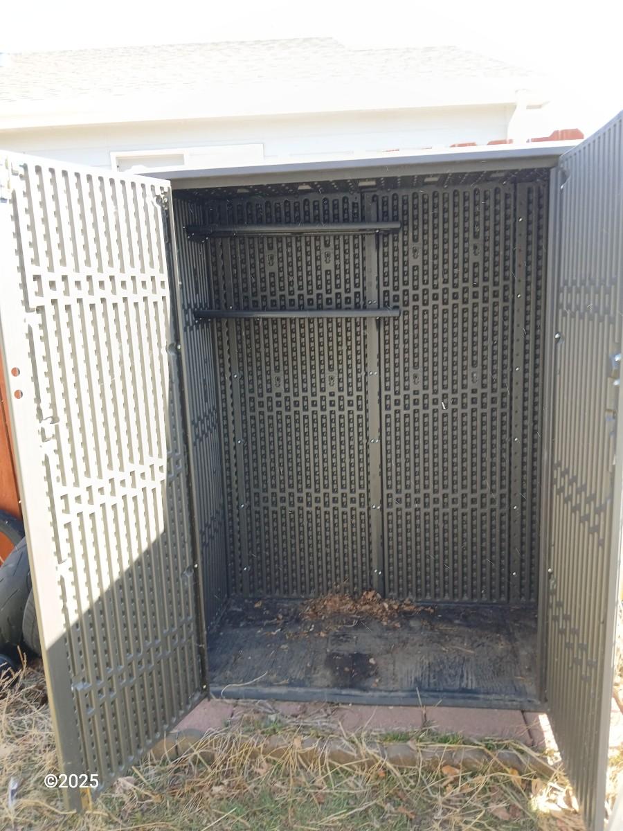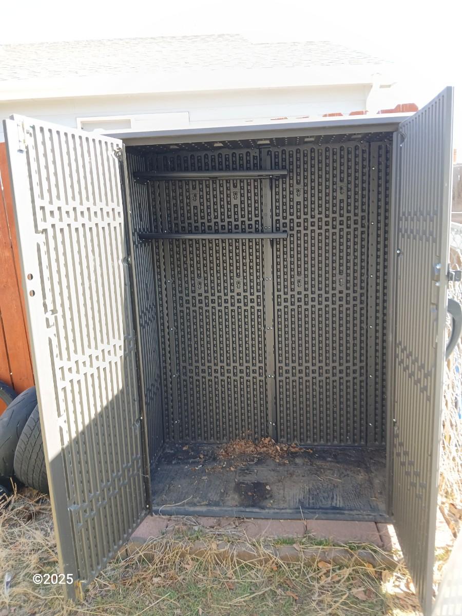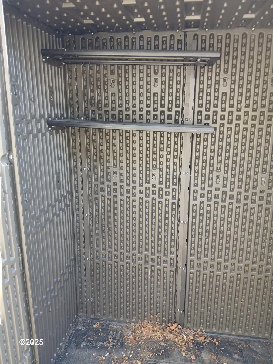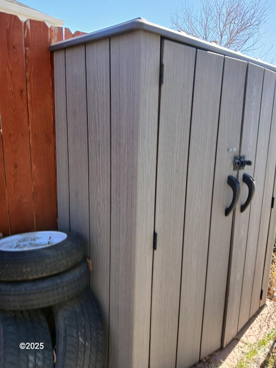 Lifetime storage shed - heavy plastic with instruction booklet and extra parts. Has two adjustable shelves inside