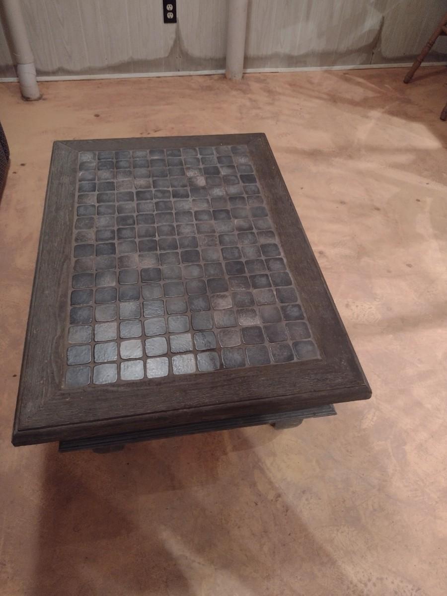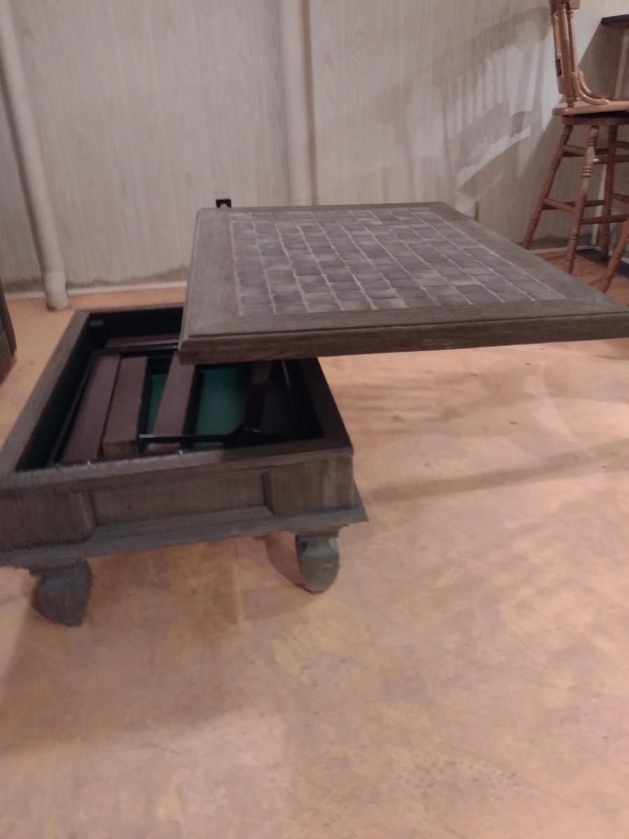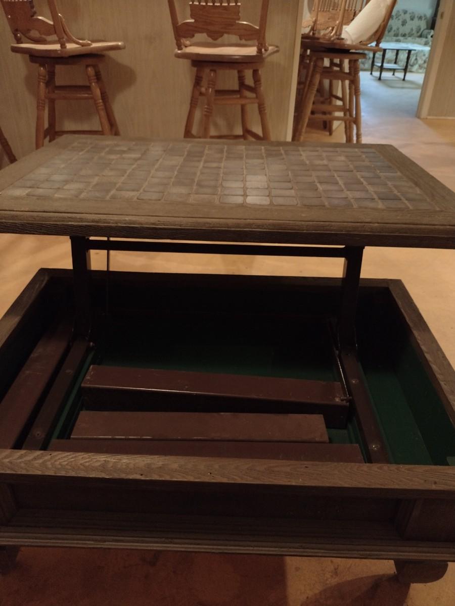Lift Top Coffee Table- Wood with Tile Top. Approx 27" x 39" x 16" tall (when closed).