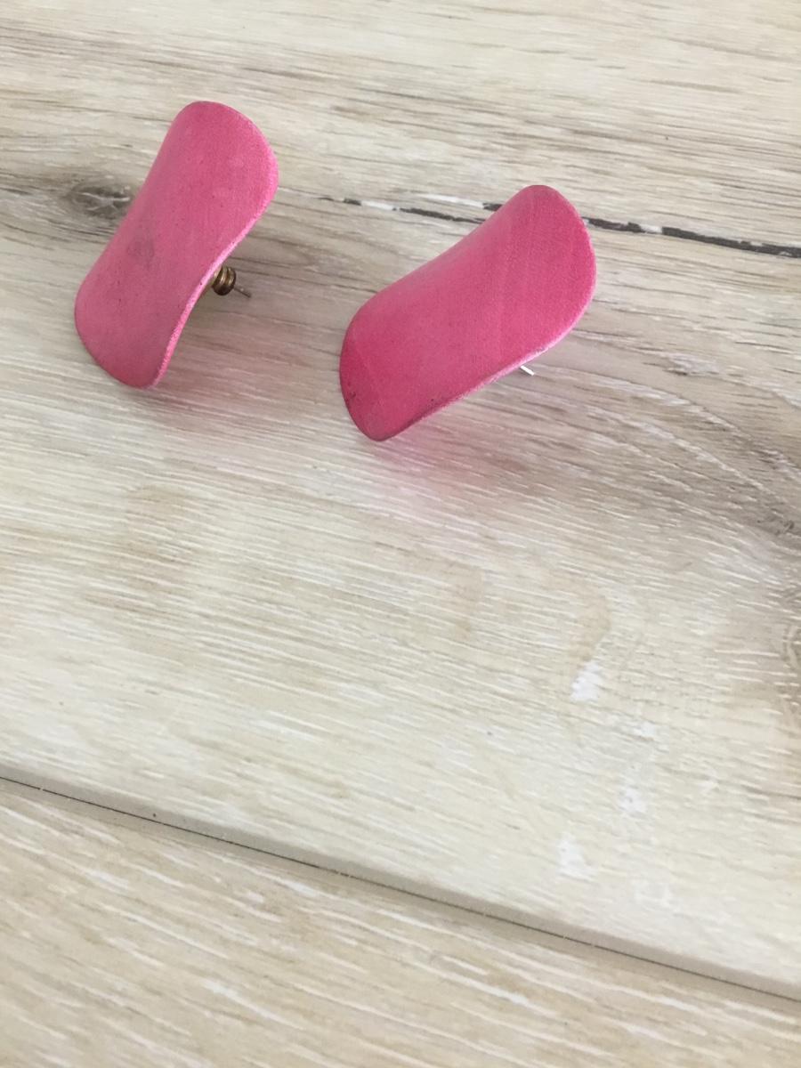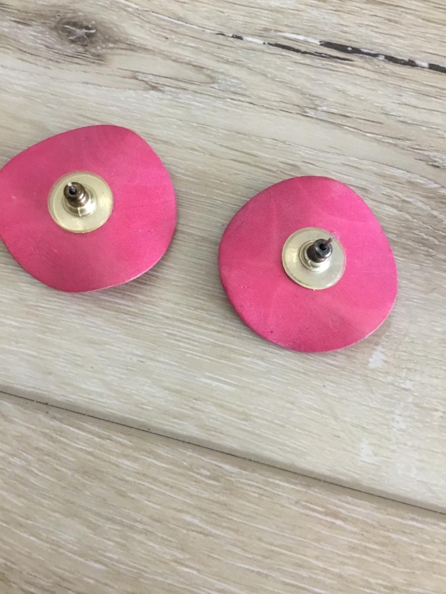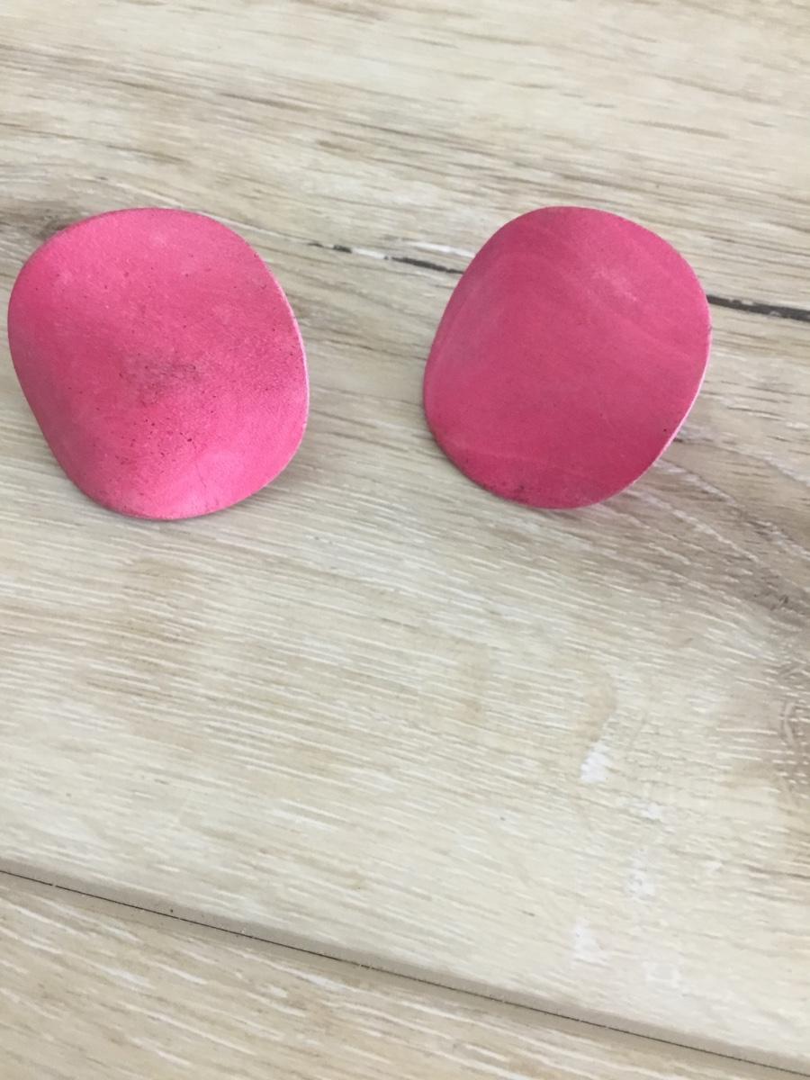 Light berry colored circular wood stud earrings