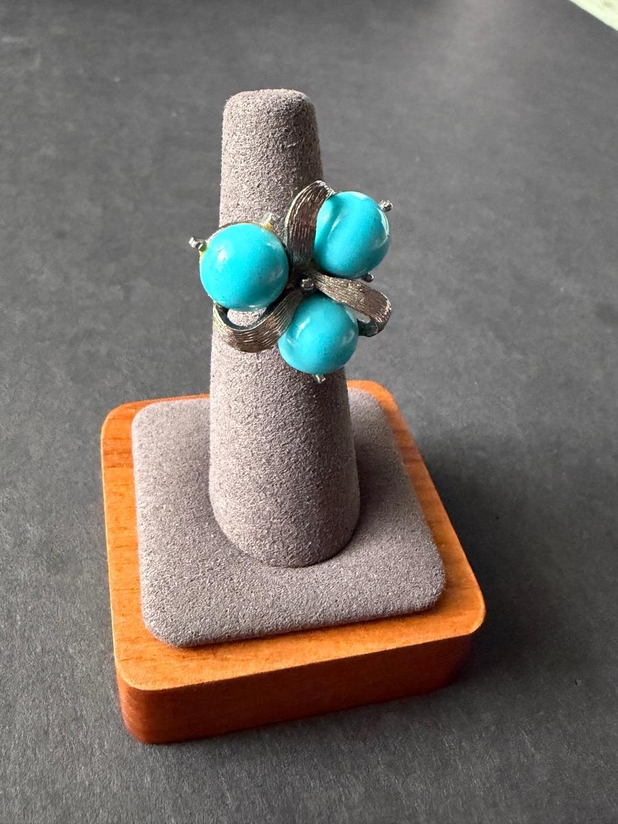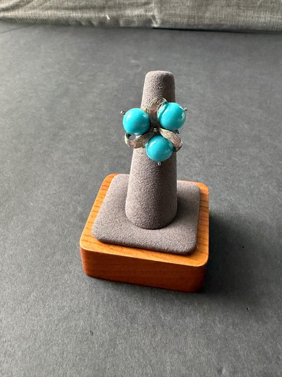 Light blue beaded fashion ring