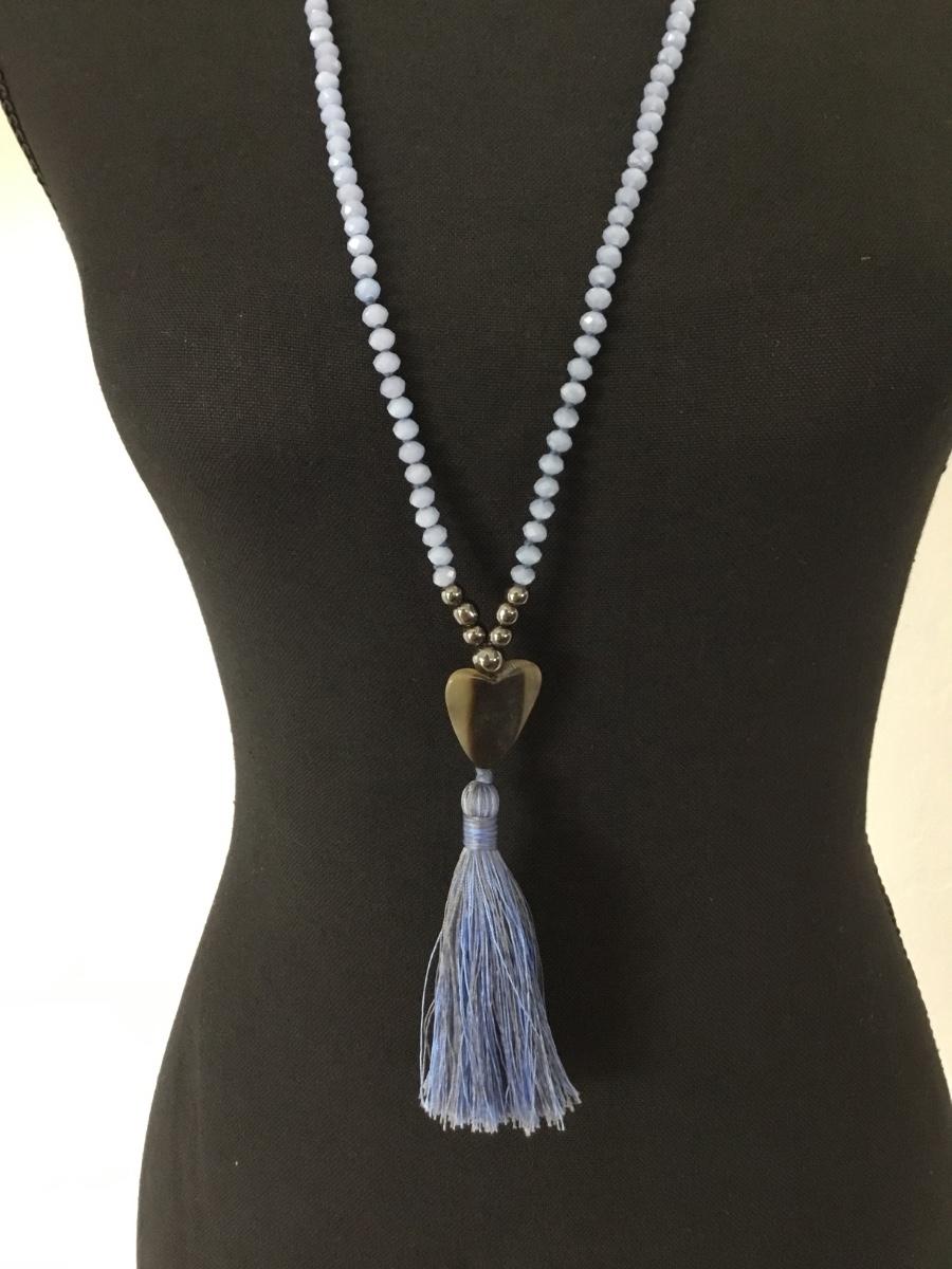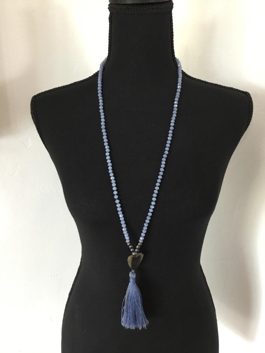 Light blue boho tassel necklace
