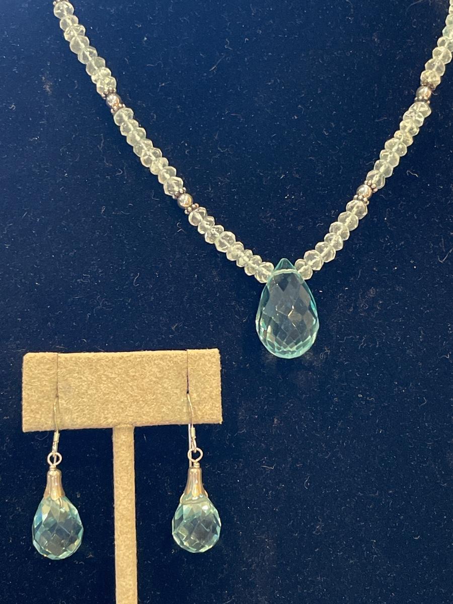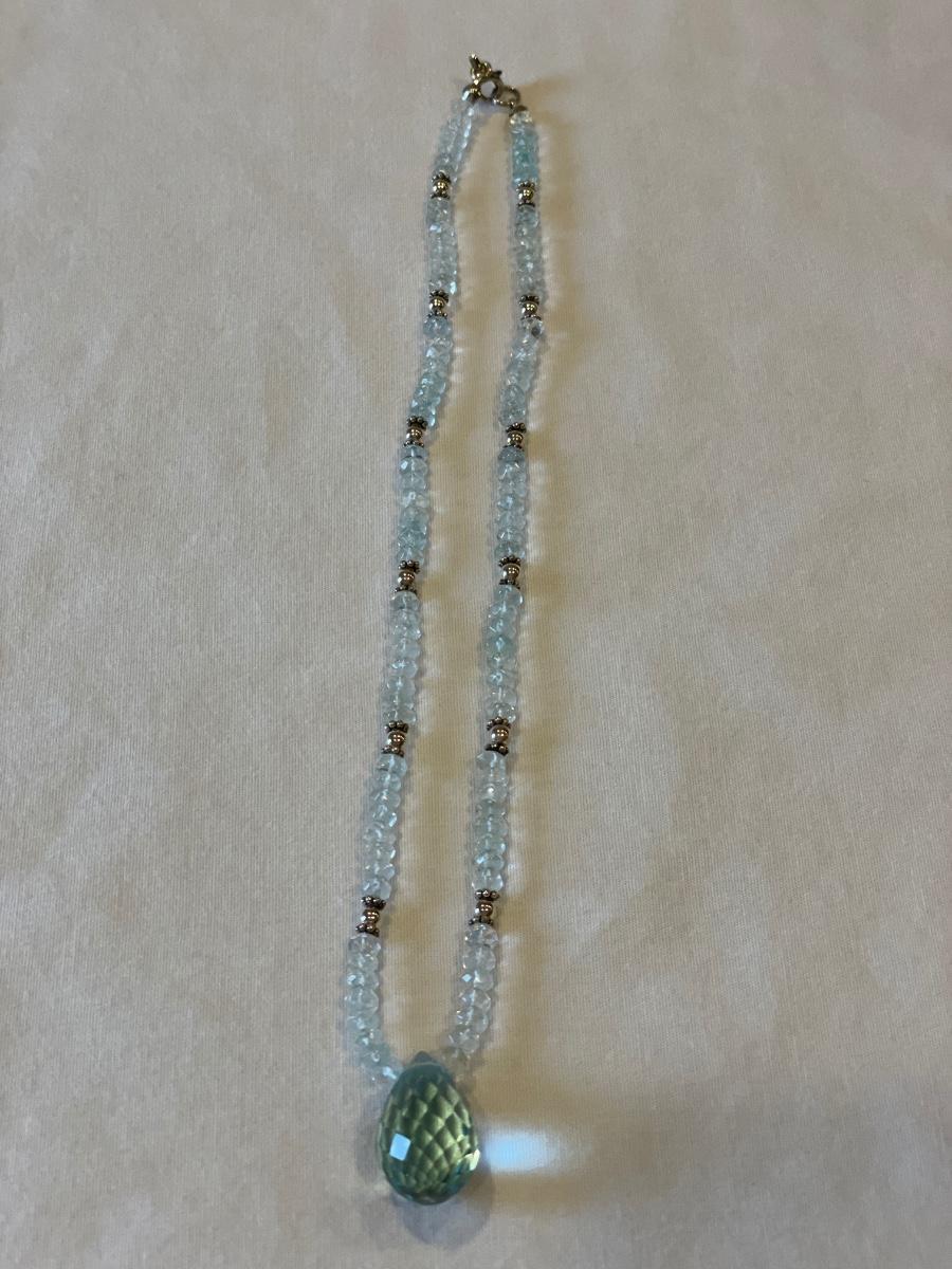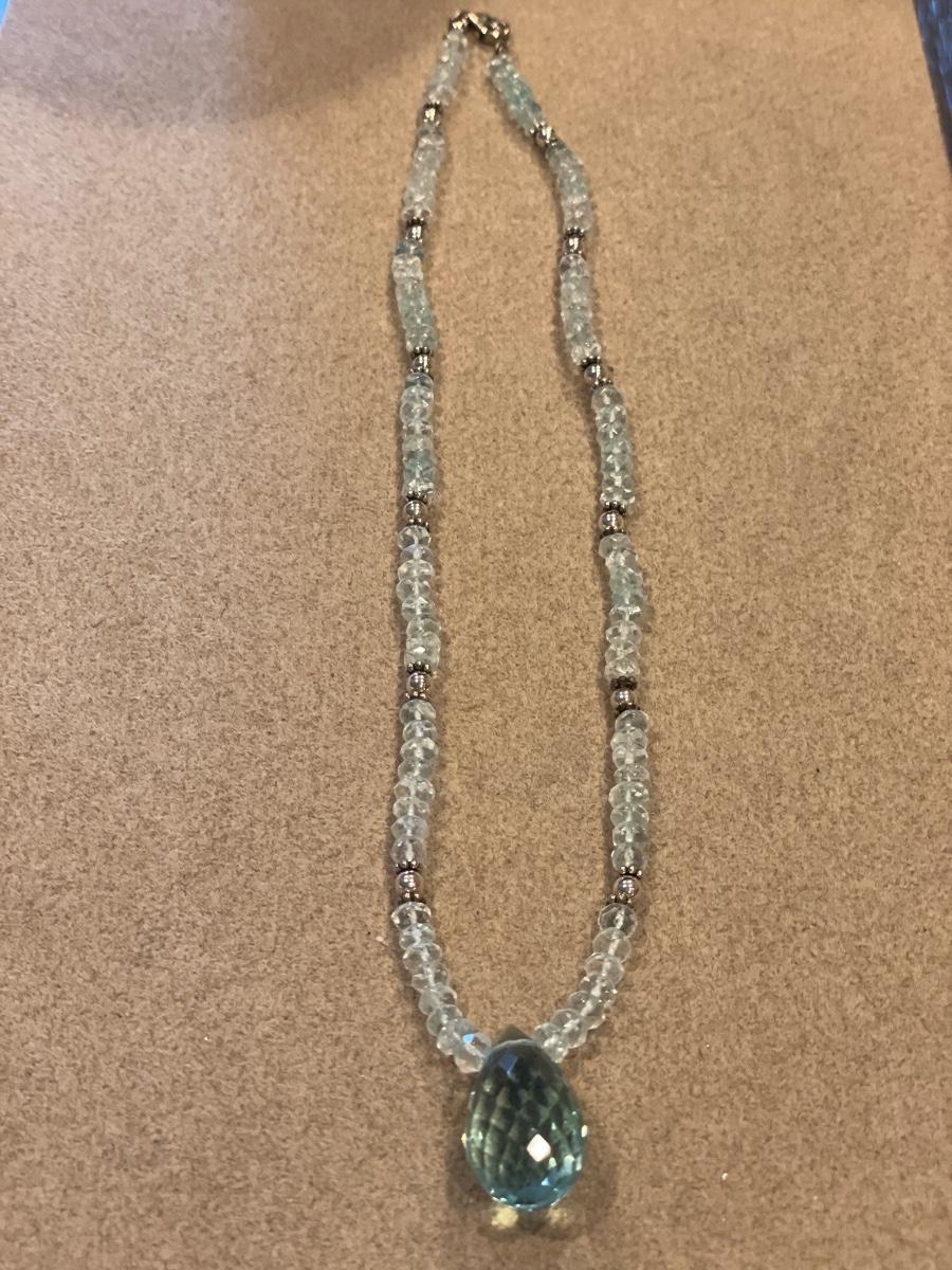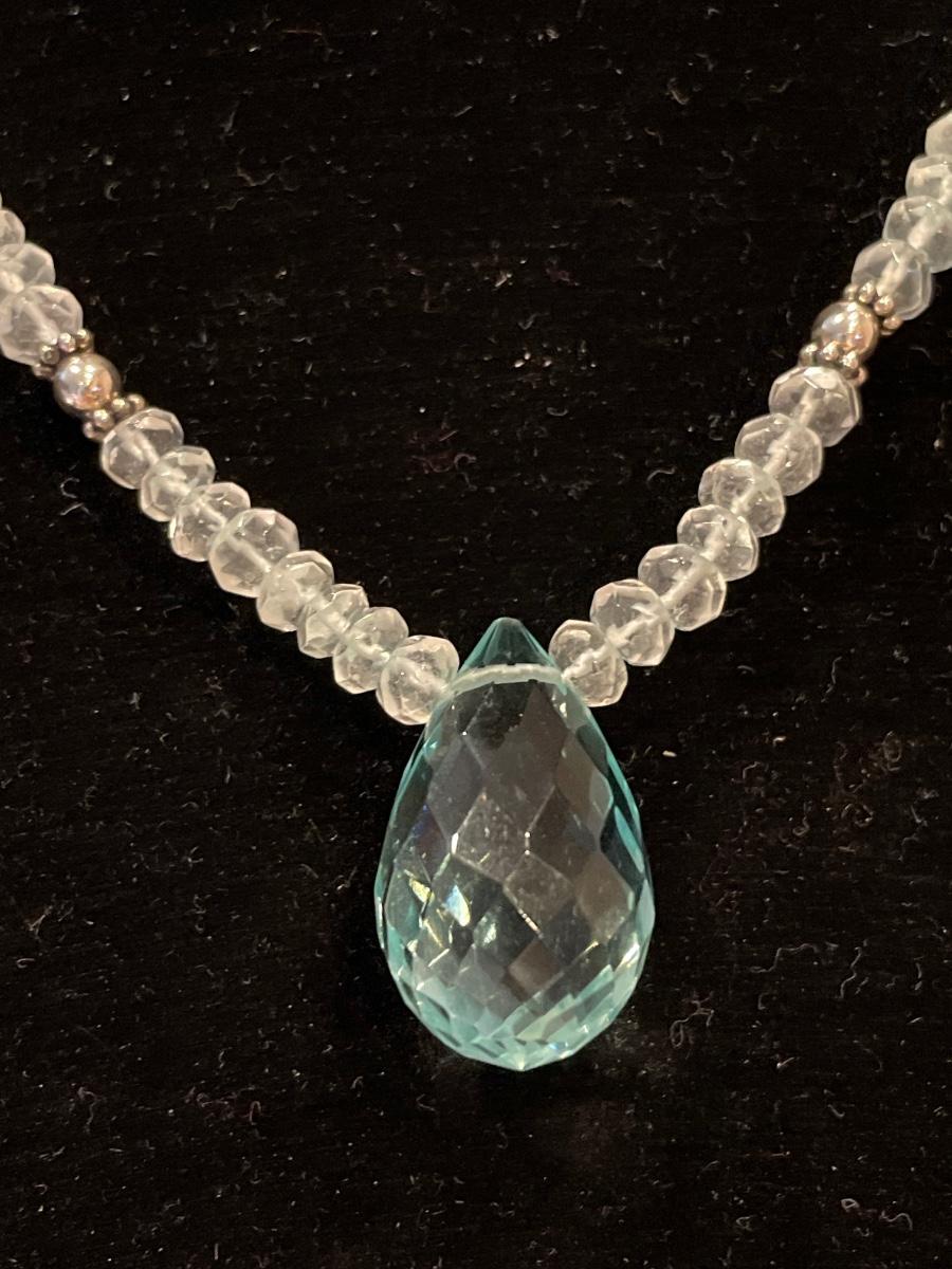 Smaller crystals on side of necklace also are a very faint shade of blue