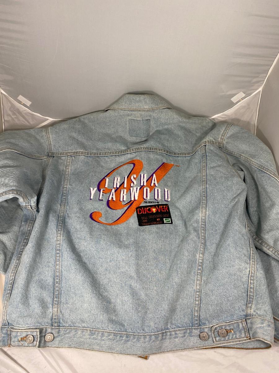 Trisha Yearwood embroidered light blue denim jacket. Concert collector item. Some light discolor to jacket, may come clean when washed. Size XL.