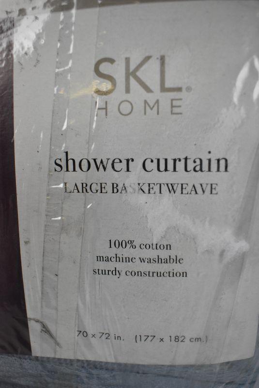 Light Blue Fabric Shower Curtain by SKL Home Large Basketweave, 70" x 72" - New