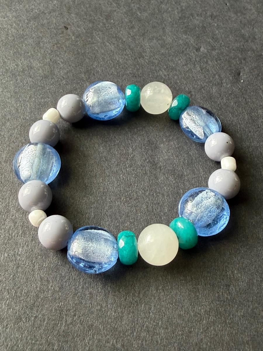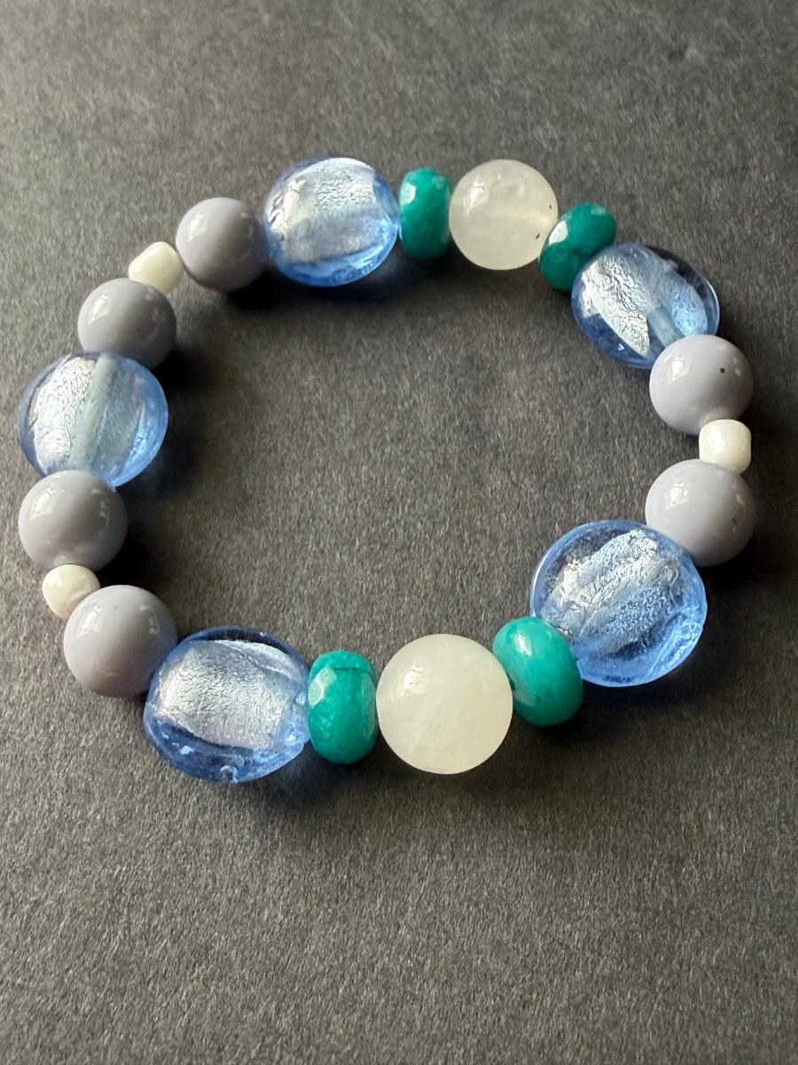 Light blue glass type beaded stretchy bracelet