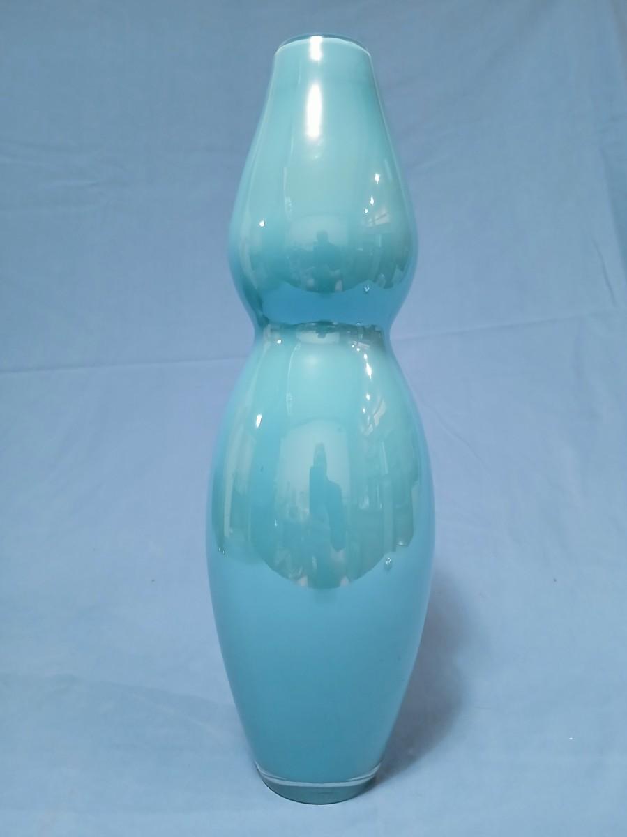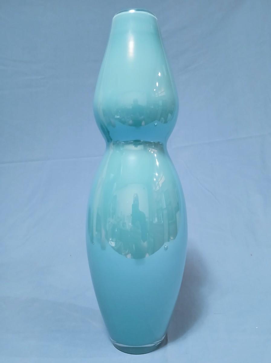 Clear Over Light Blue Cased Glass Double Gourd Vase
