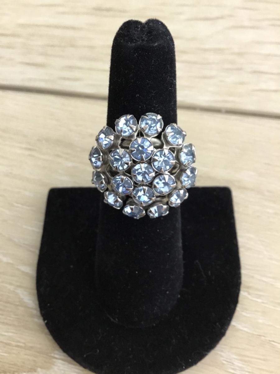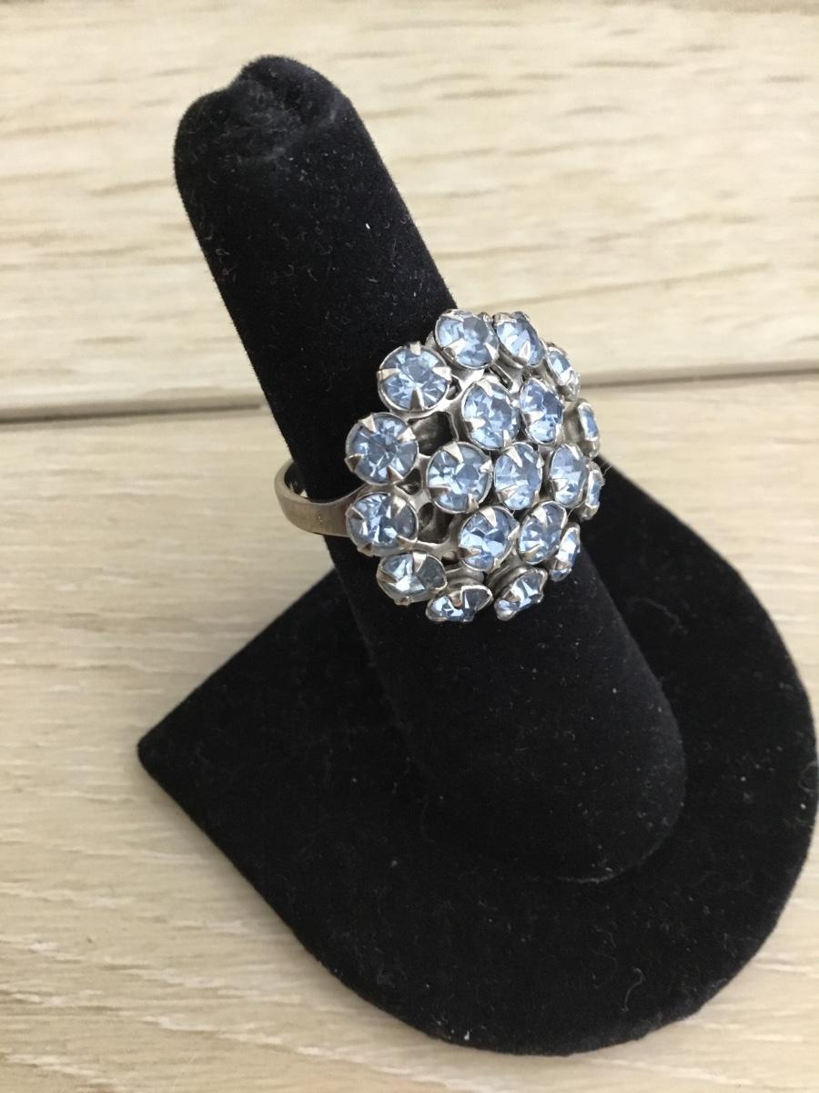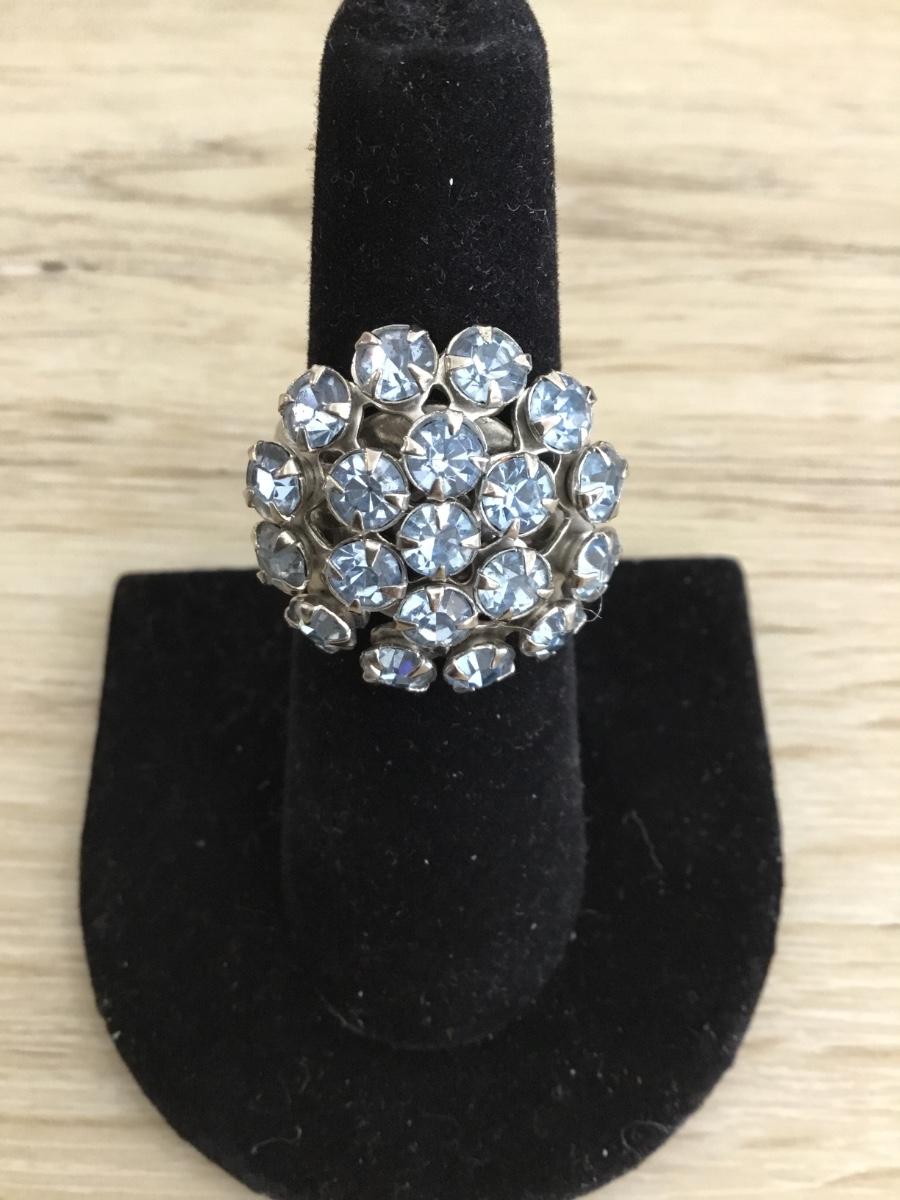 Light blue rhinestone, cluster adjustable, silver toned fashion ring
