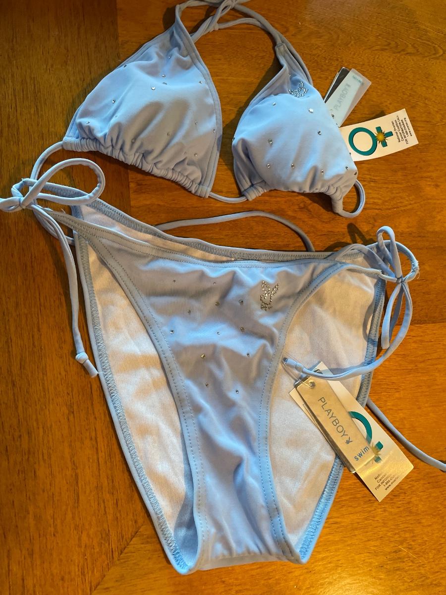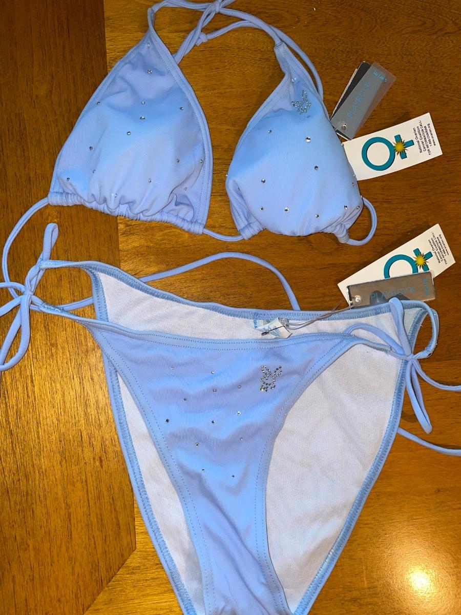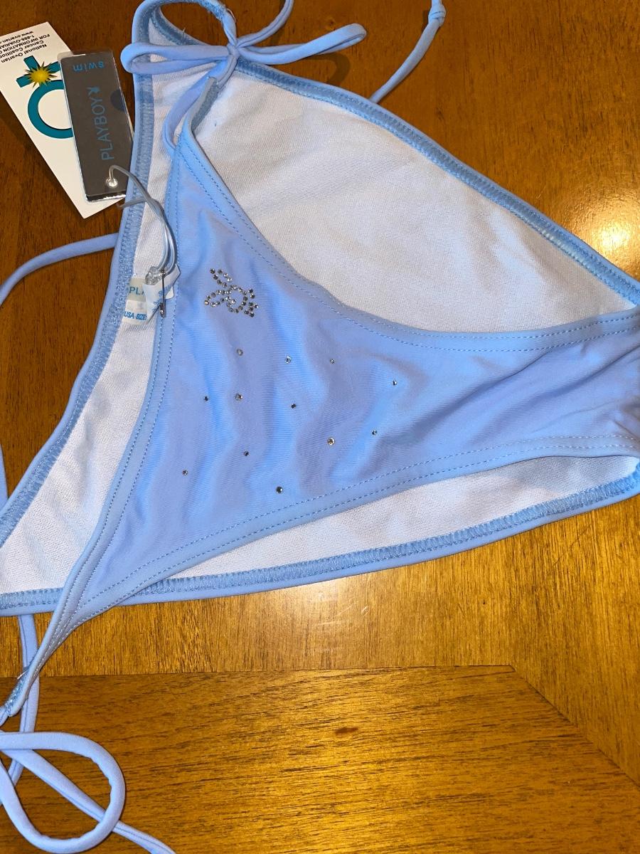 Light blue & rhinestone Playboy string bikini