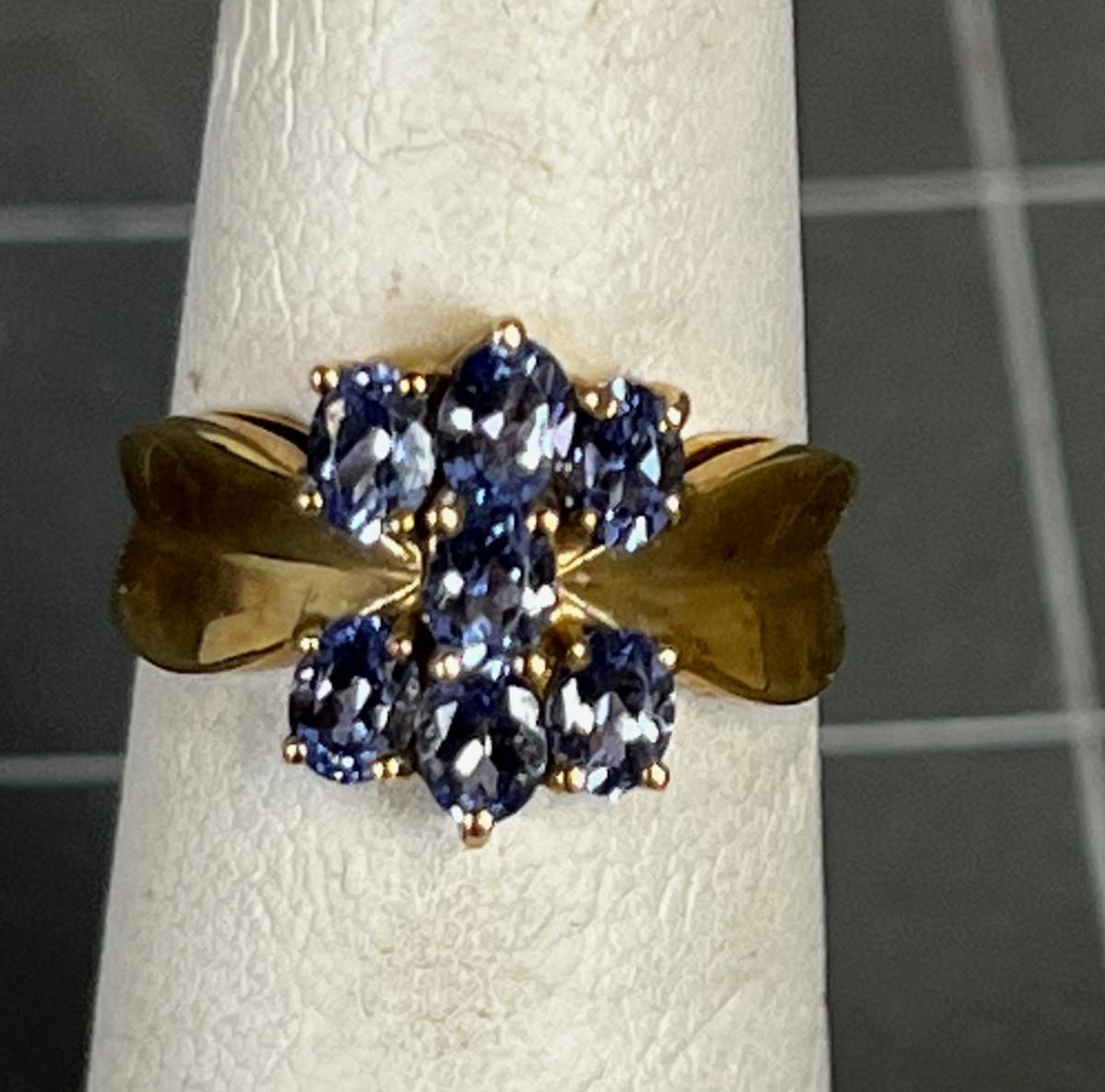 Light Blue Sapphire 7 Oval Shape Cut Stones 10K Gold