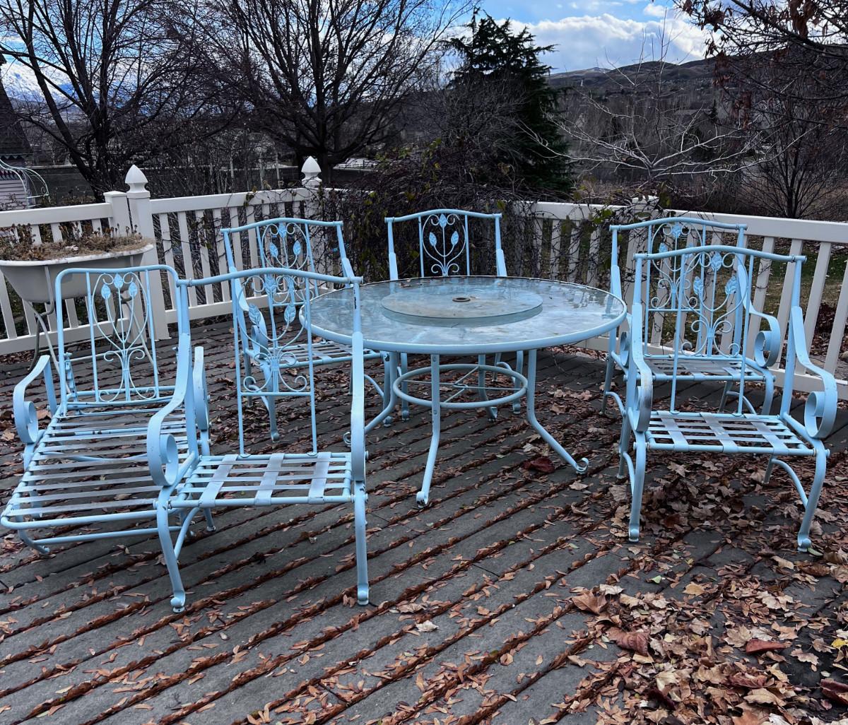 Light Blue Set, 5 Chairs, Table and Chaise Lounge
