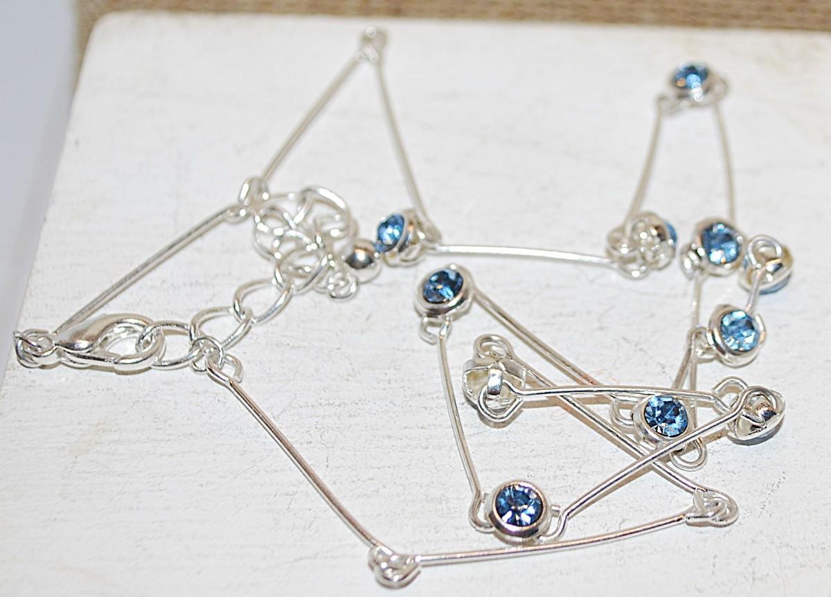 Light Blue Stones and Silver Tone NECKLACE (17" L) & BRACELET (1¾" Circ.) Set with Lobster Clasps