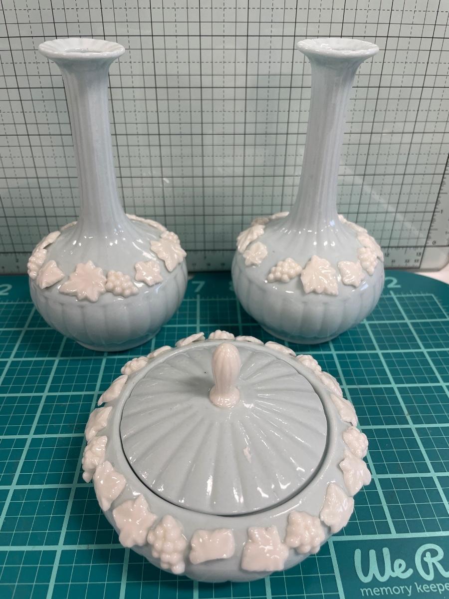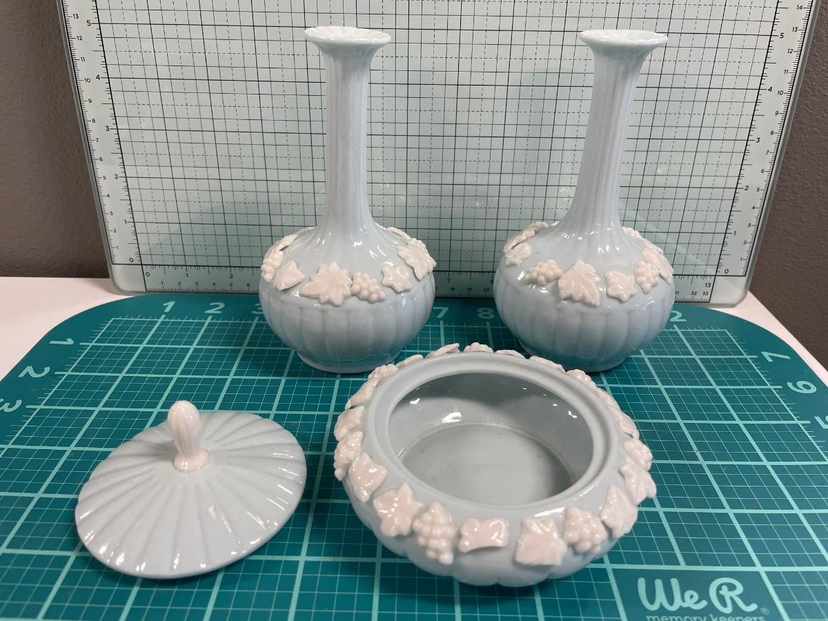 Light blue vases and jewelry holder set