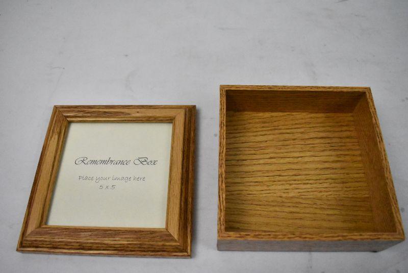 Light Brown Wooden Remembrance Box with 5" x 5" Frame in the Top - New