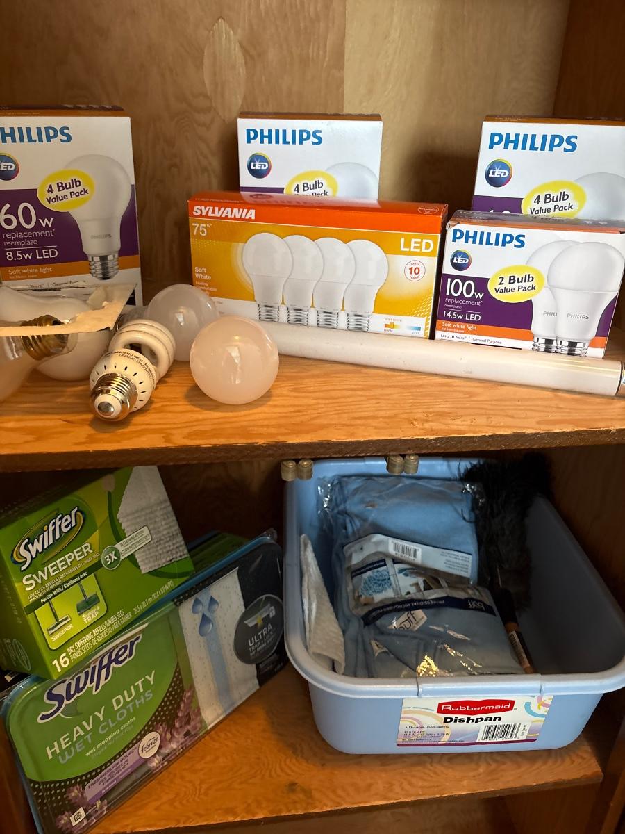 Light Bulbs and cleaning supplies