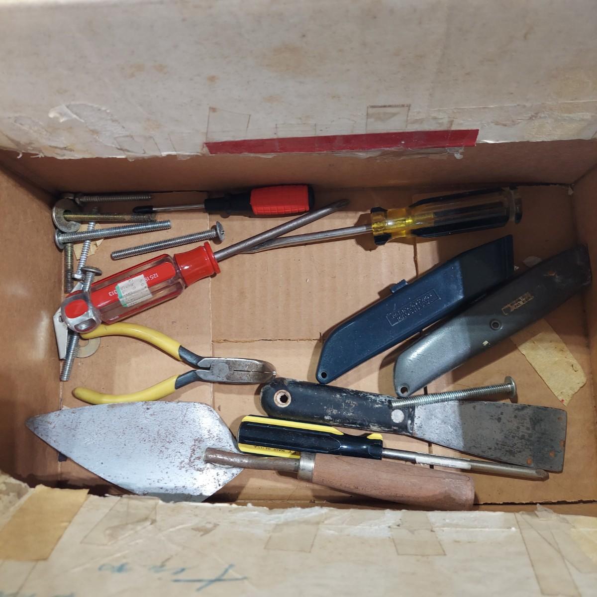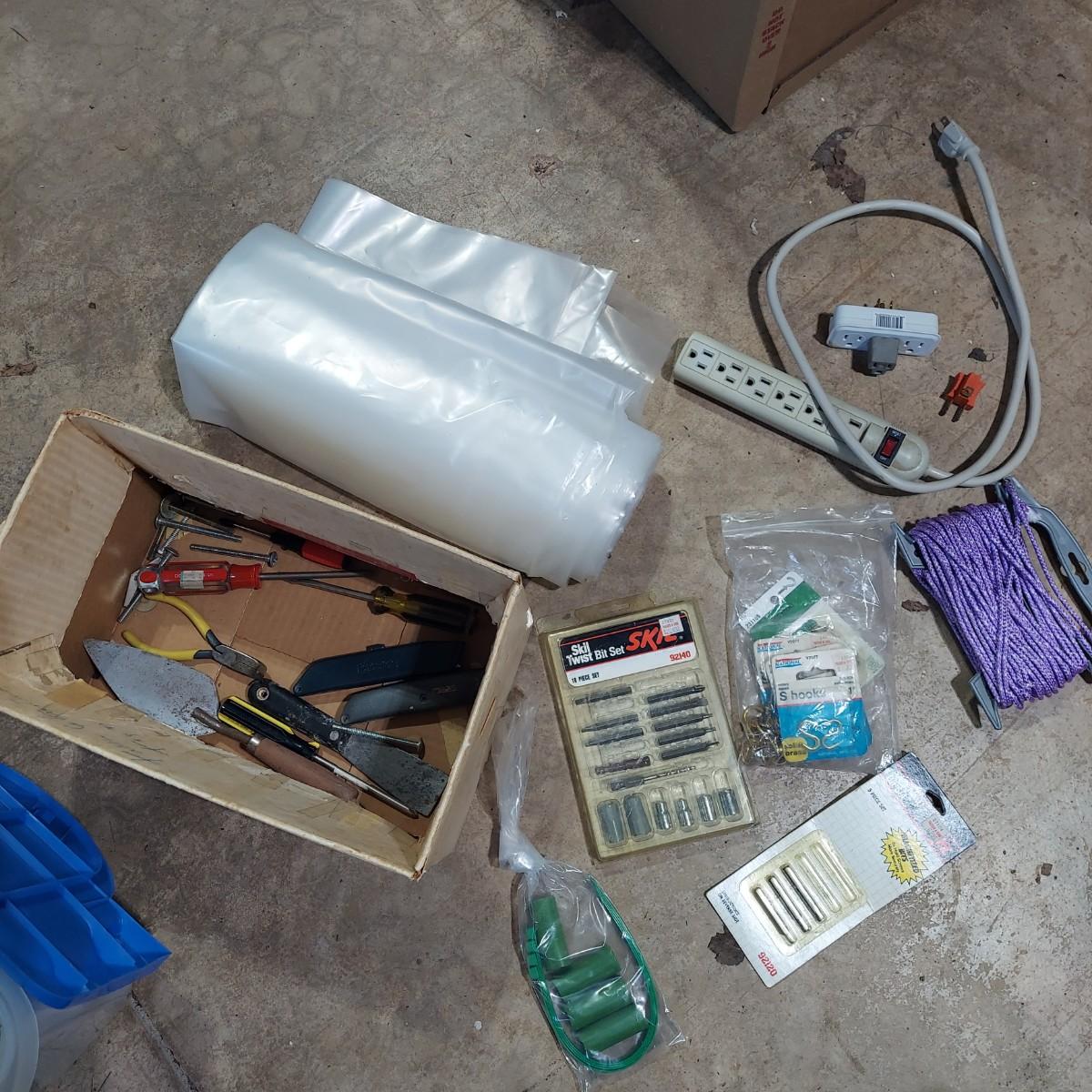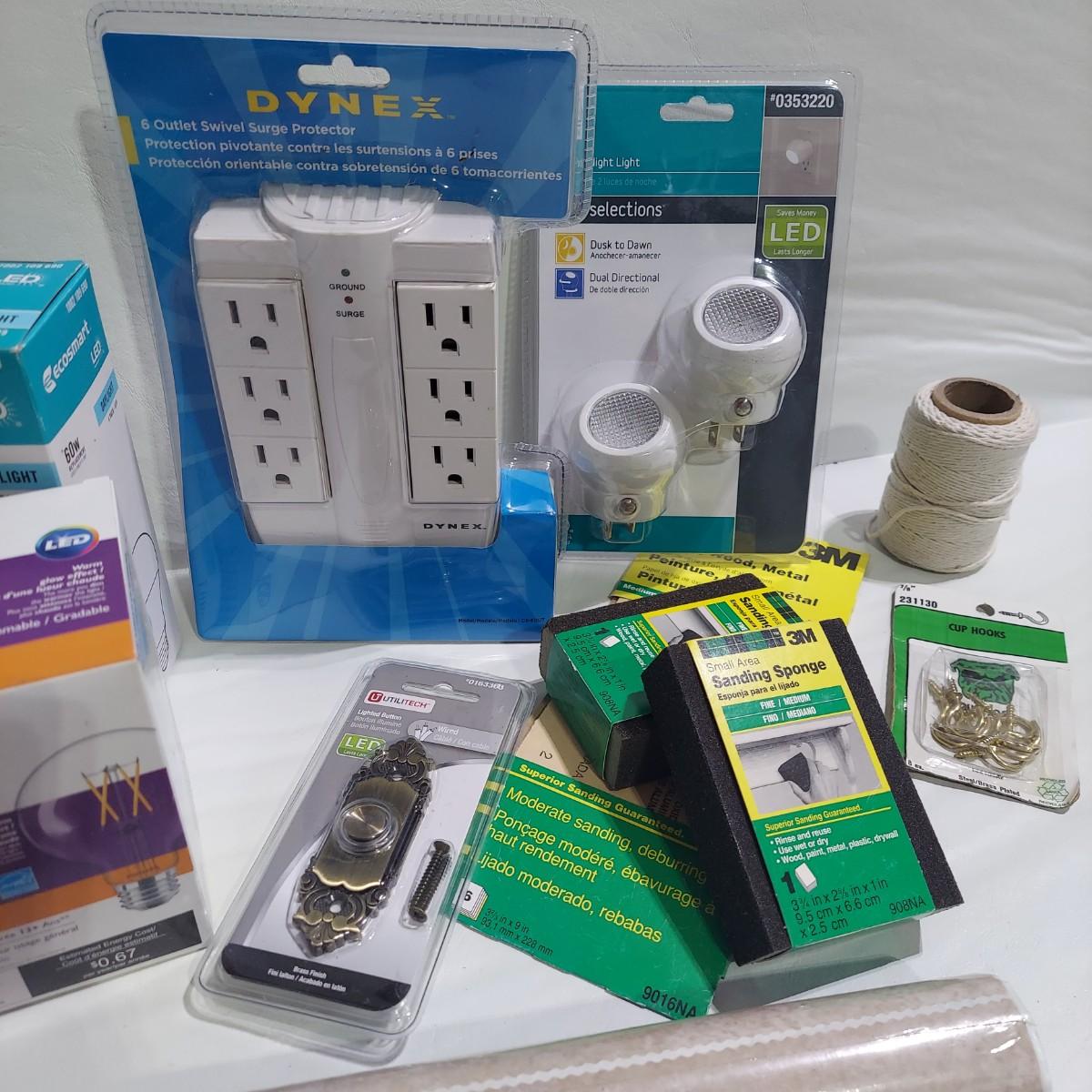 Lot includes a bin full of light bulbs that appear to be unused in original packaging. Plus several miscellaneous hardware items and some hand tools. Please see photos for details. Local Pickup Only