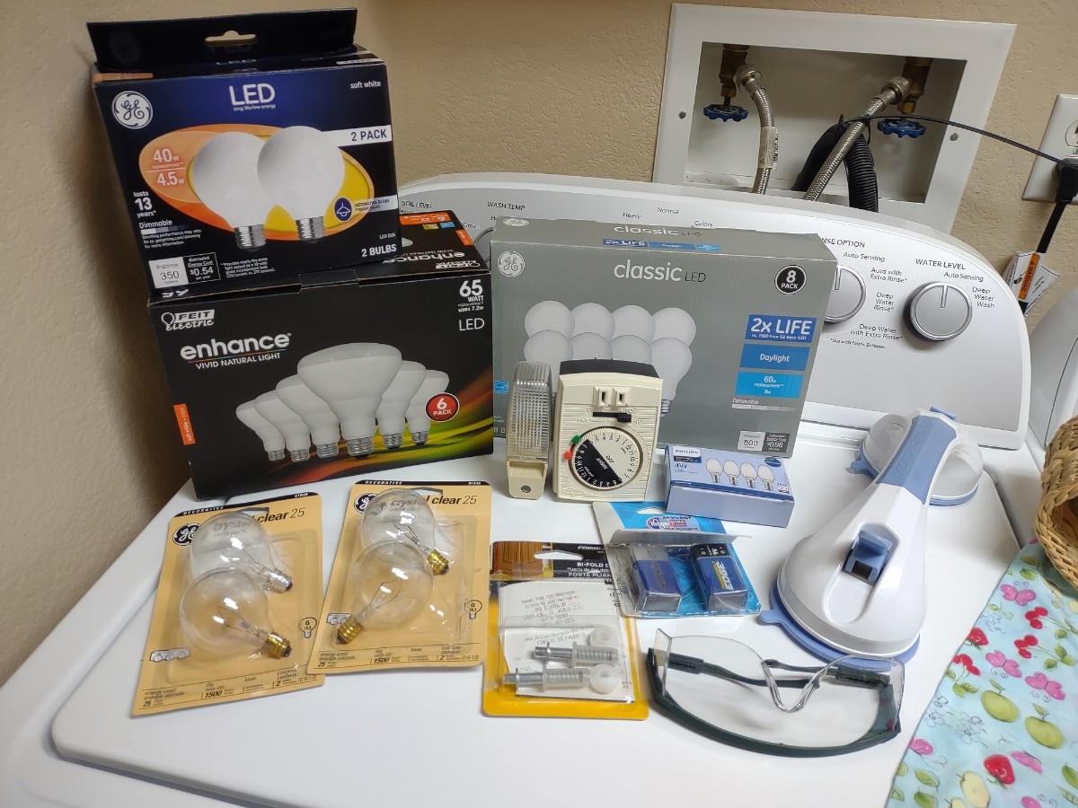 LIGHT BULBS, QUILTED THROW, BASKET AND MORE