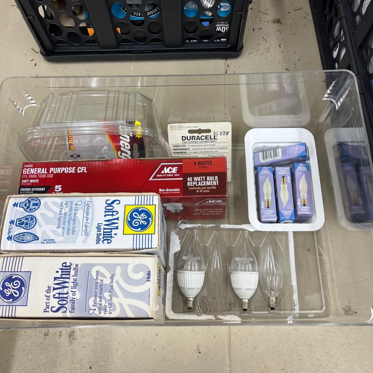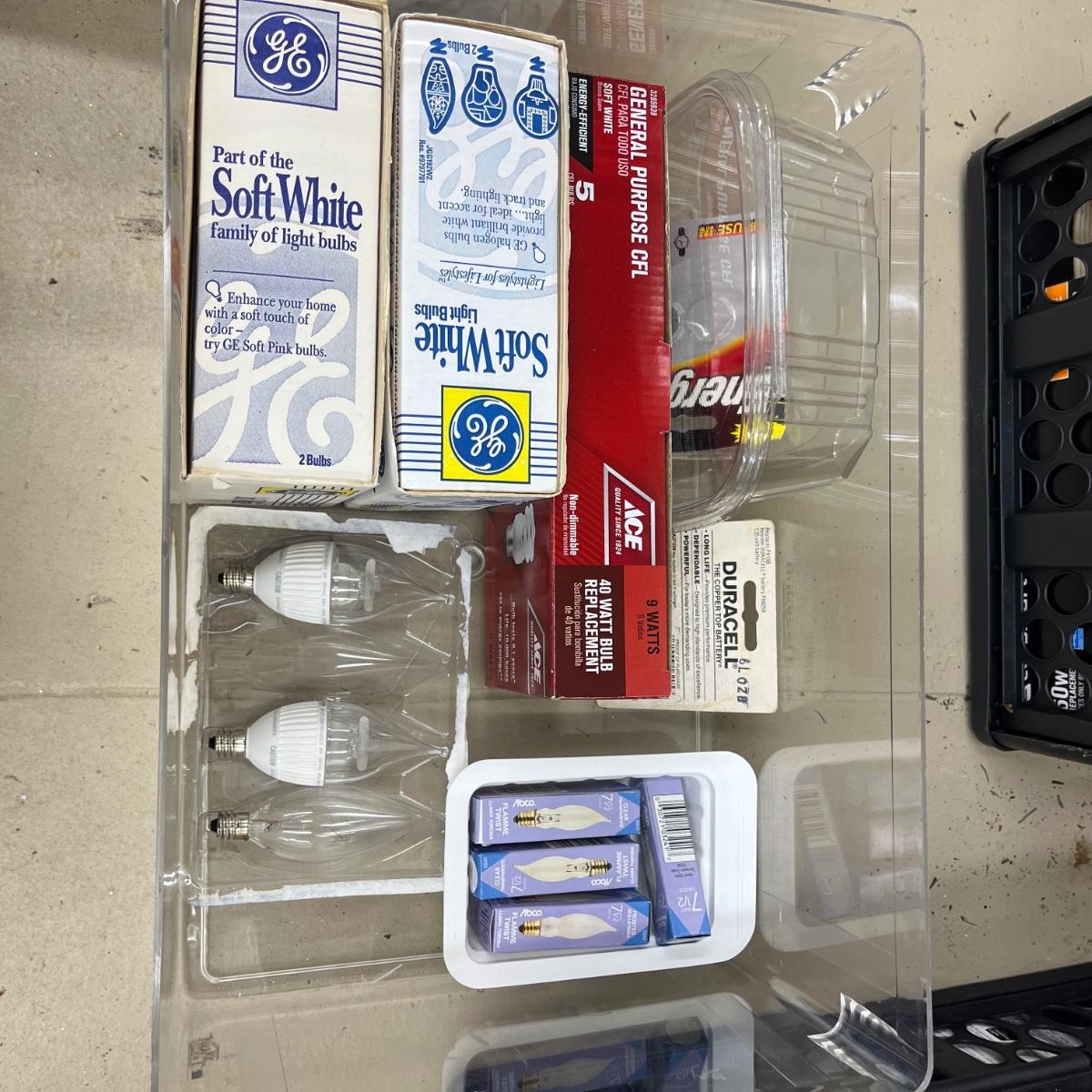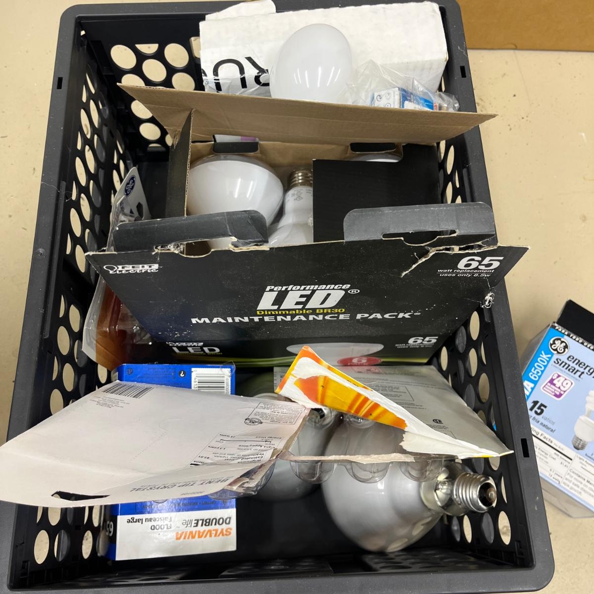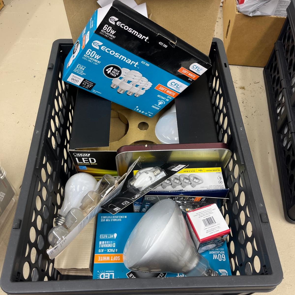 This lot includes three Honeywell programmable thermostats and a large assortment of bulbs with LED, fluorescent and incandescent bulbs.