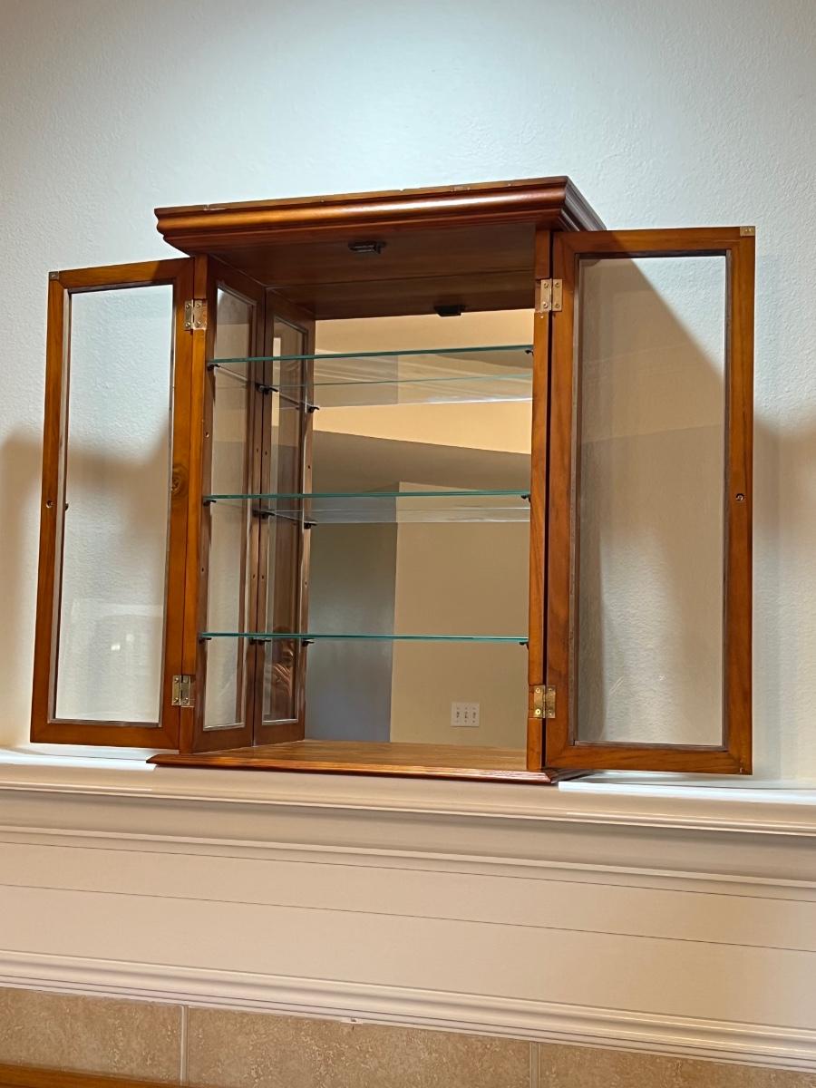 Small Light Cherry Wooden Mirrored Hanging Display Cabinet