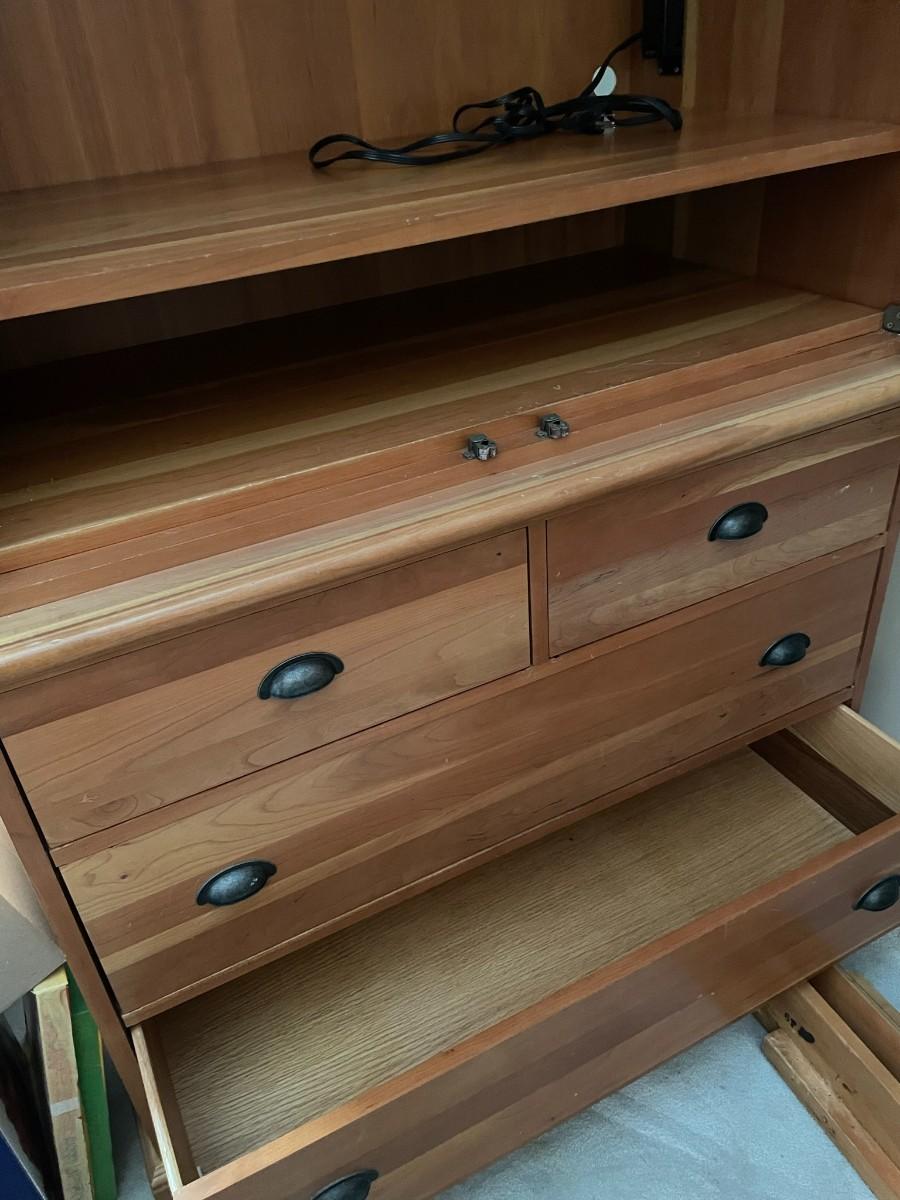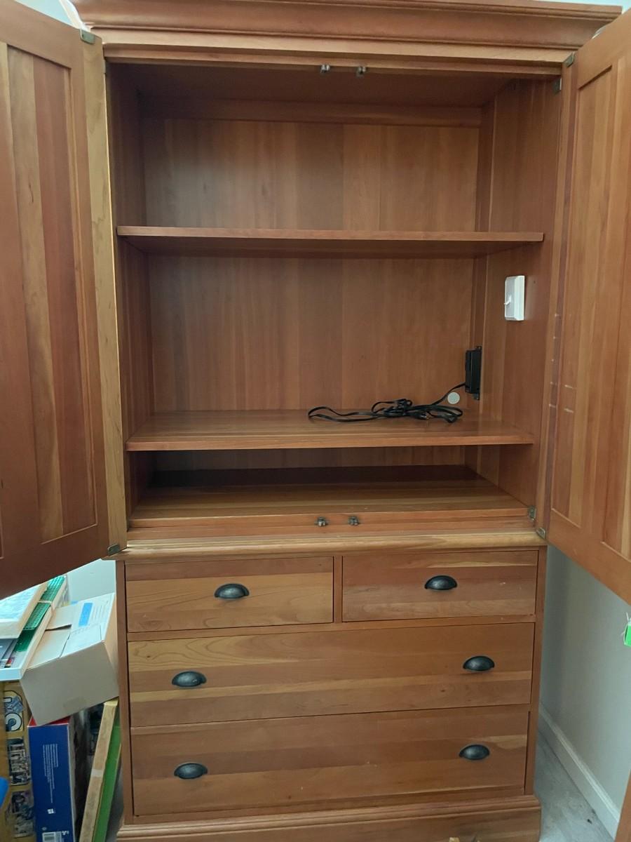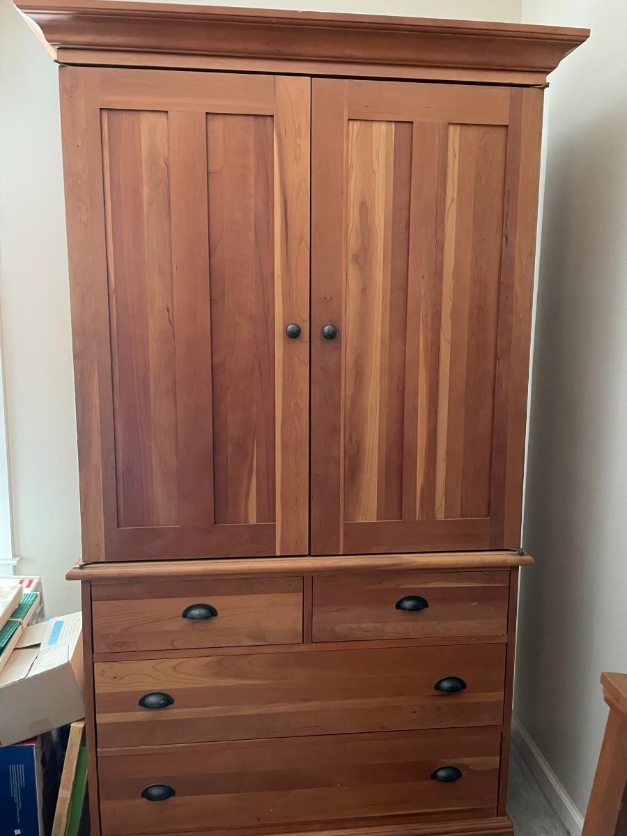 Armoire - Dovetail Drawers, 4 drawers & 2 Shelves, Light colored wood. Measures 40W x 21 1/2 D, 77 1/2 H
