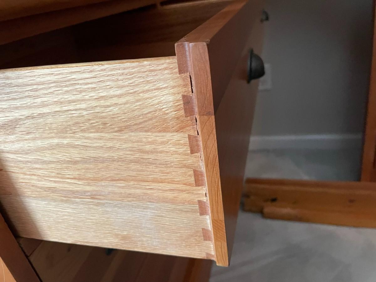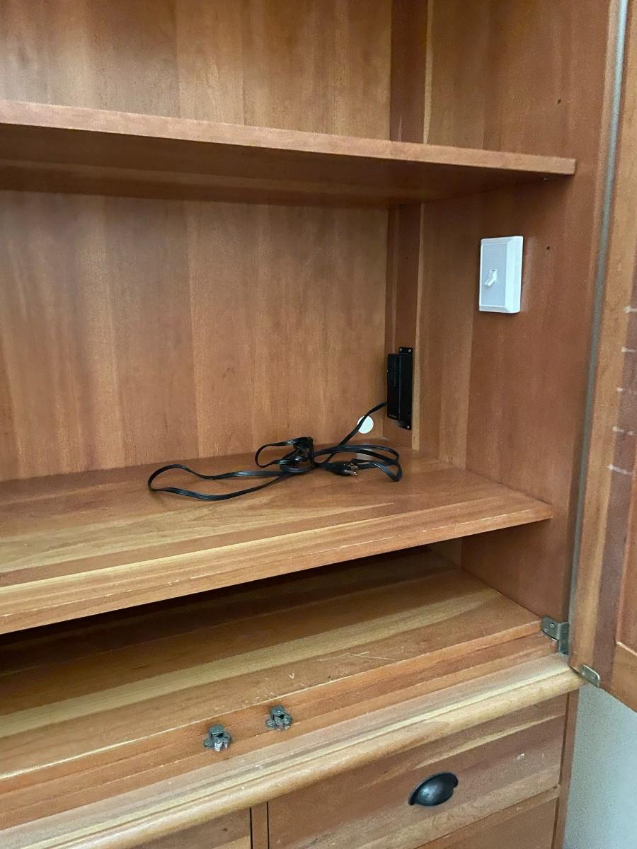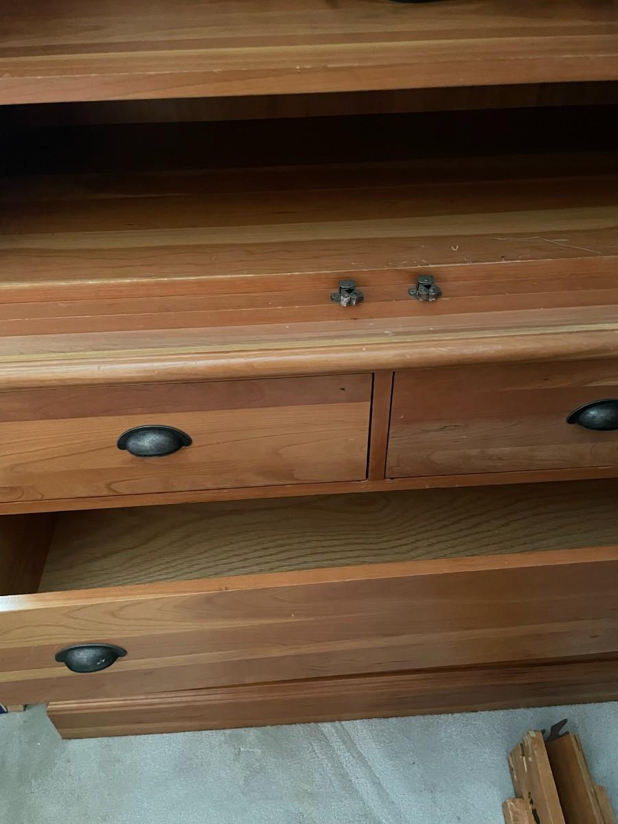 Armoire - Dovetail Drawers, 4 drawers & 2 Shelves, Light colored wood. Measures 40W x 21 1/2 D, 77 1/2 H