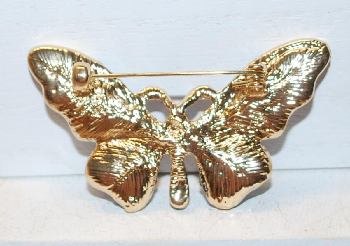 Light & Dark Blue Stones Butterfly BROOCH (2" x 1 ¼") on a Gold Tone Setting