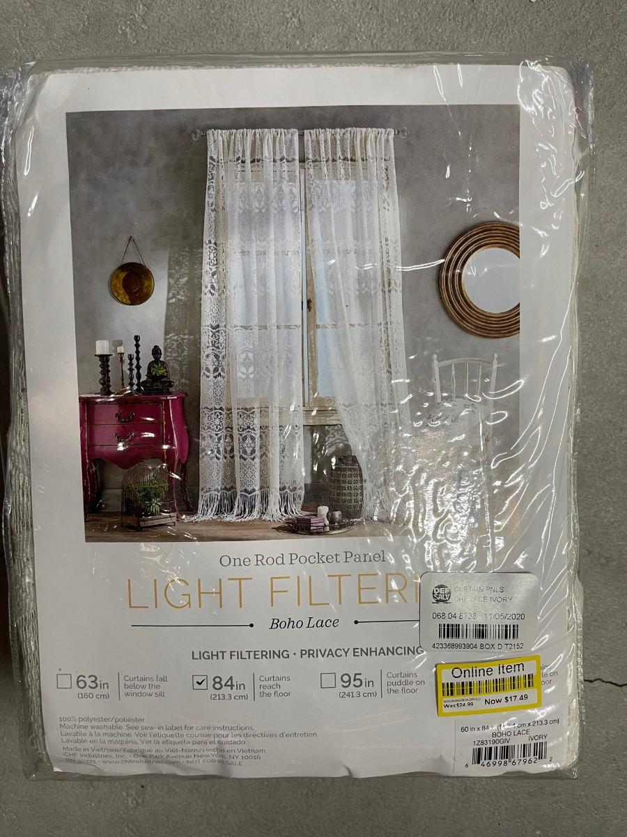 Light Filtering Boho Lace Curtain. 84" x 60". 1 panel. 646998679622.