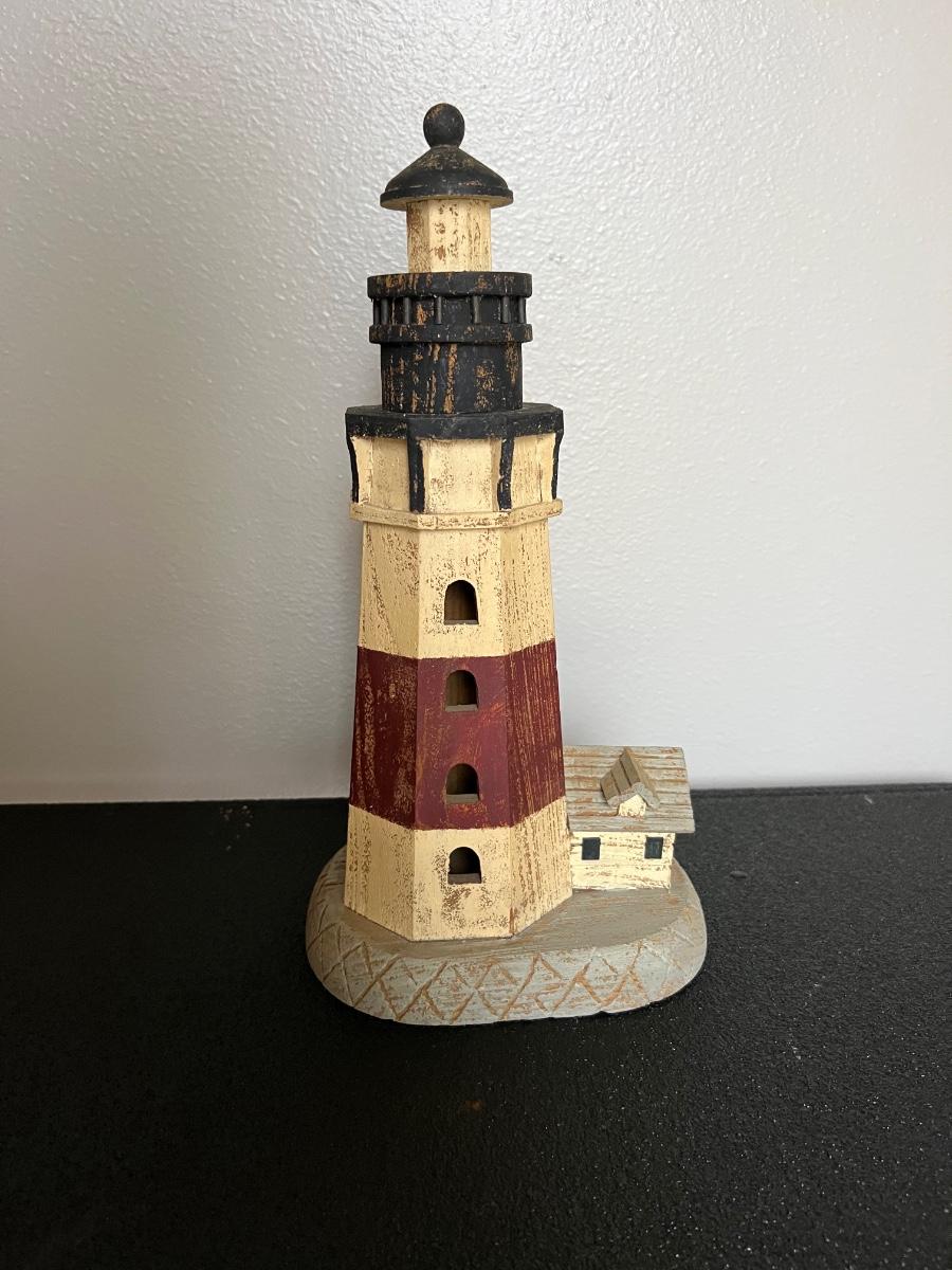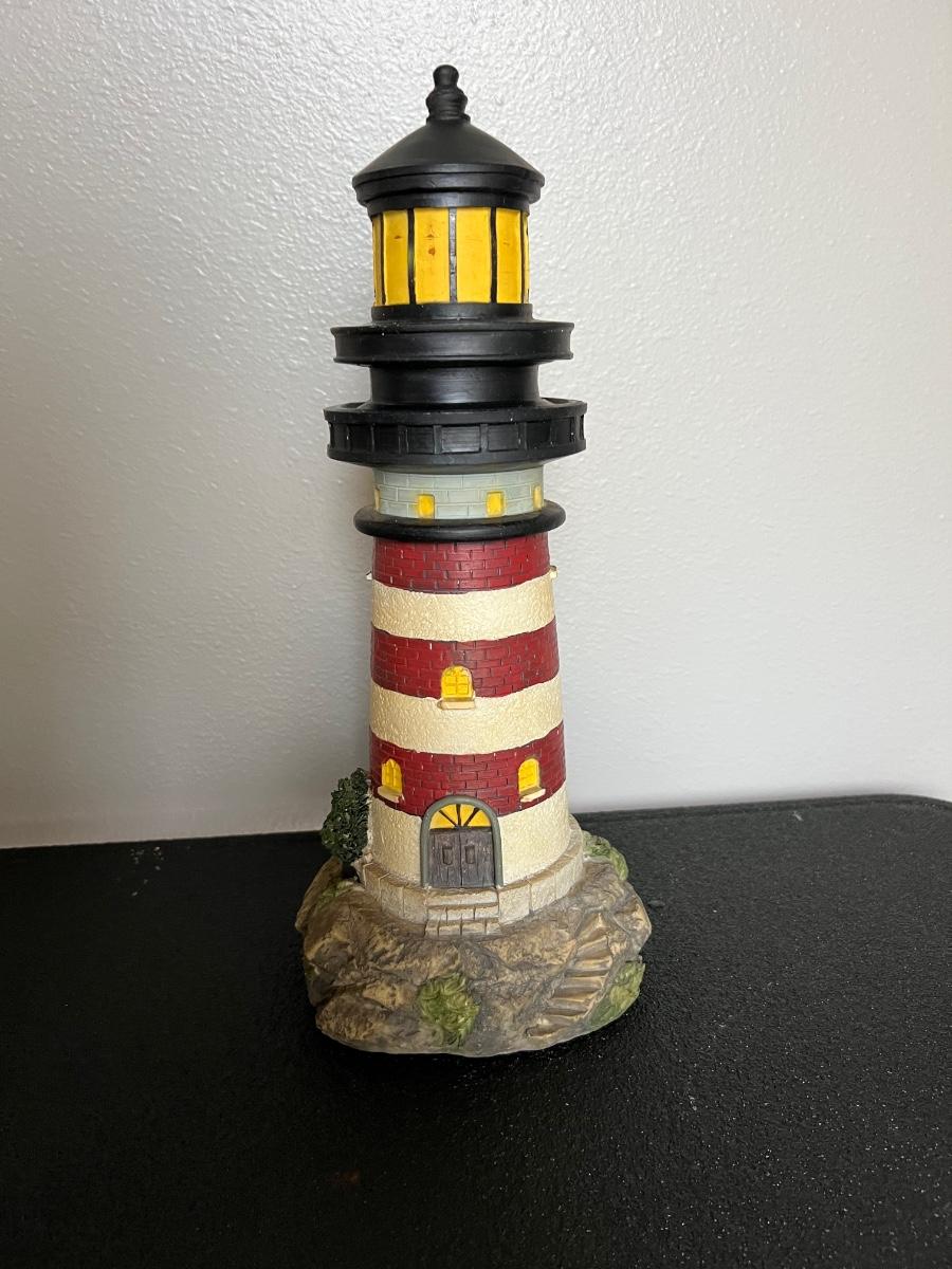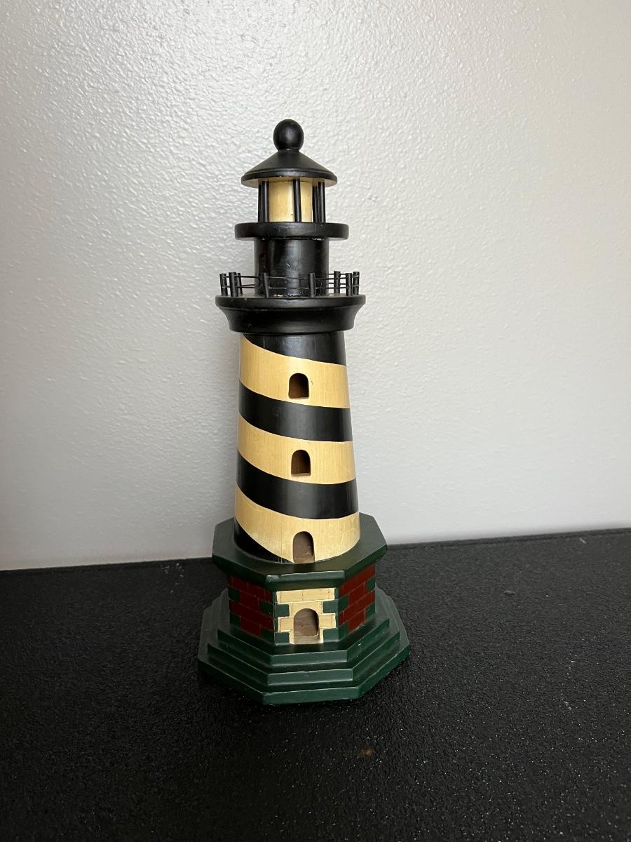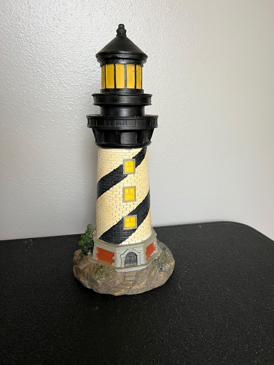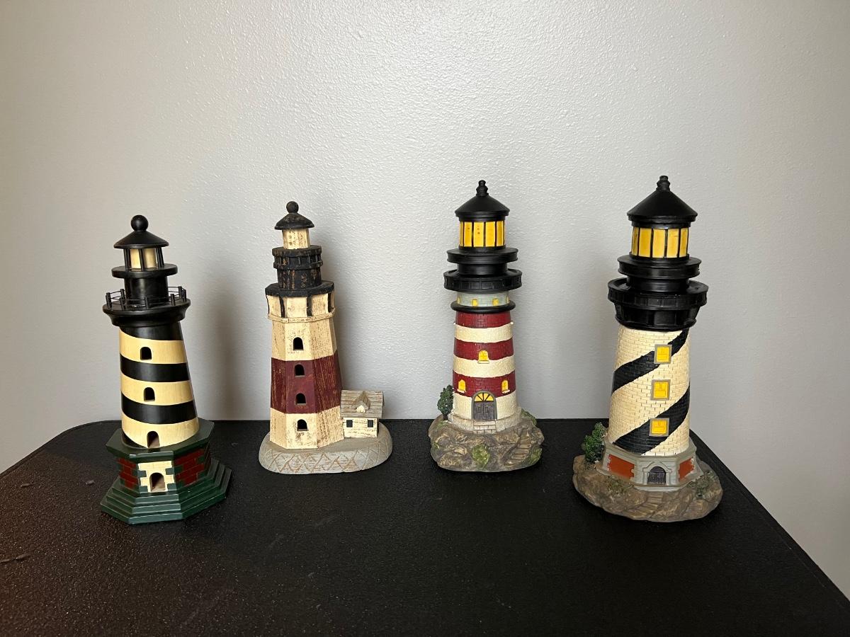 Set of four lighthouses measures 14 1/2 inches tall and 5 1/2 inches wide