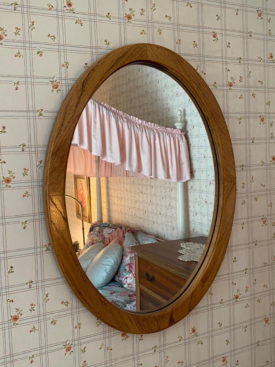 Light Oak Wall Hanging Oval Mirror. 18"x24" size.