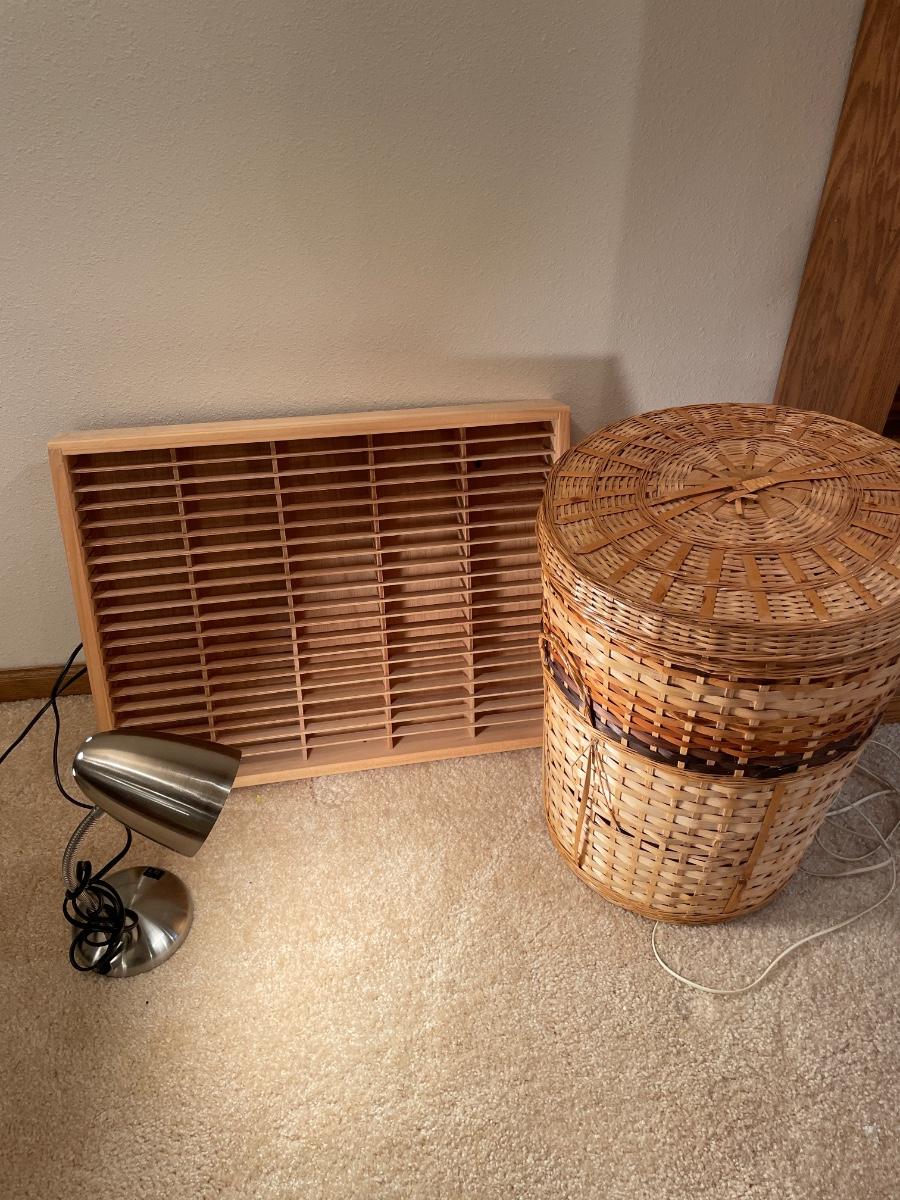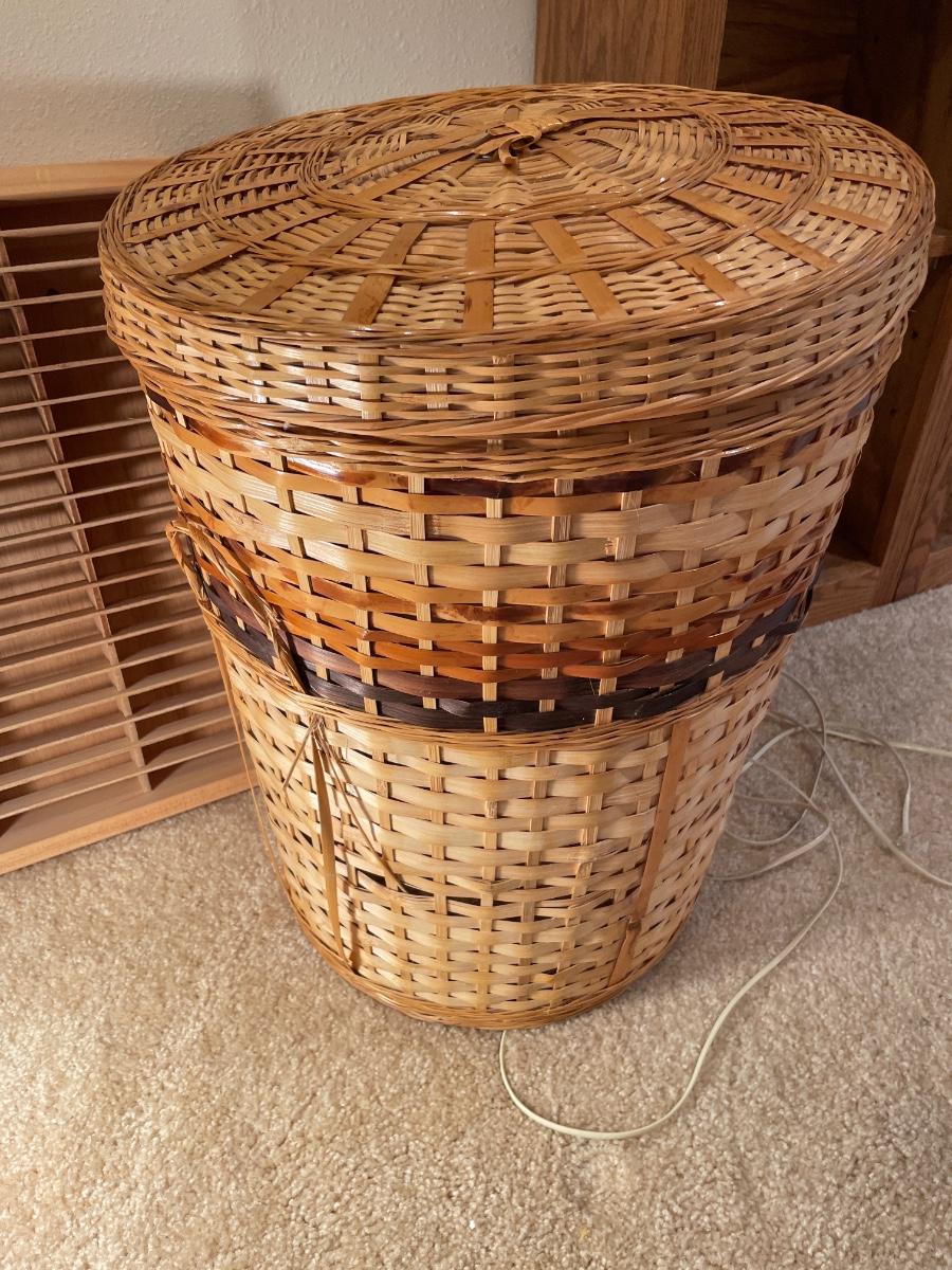 Light, organizer and tall wicker basket