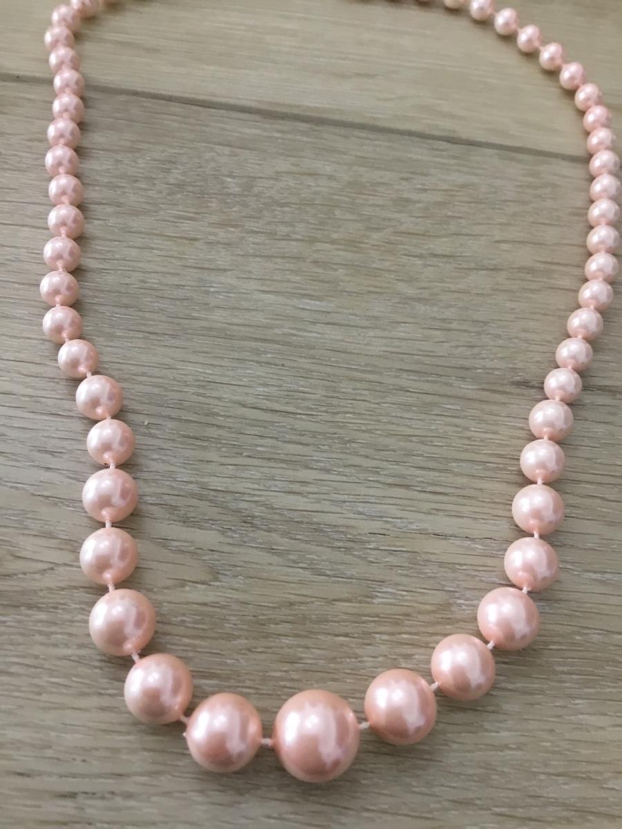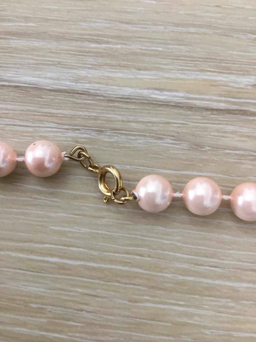 Light pink beaded gold tone necklace