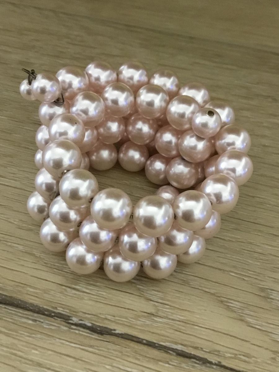 Light pink beaded pearl like wire adjustable bracelet