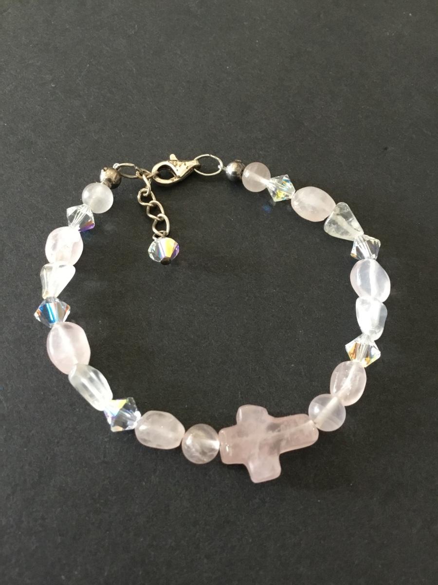 Light pink crystal rose quartz, bead bracelet, very beautiful