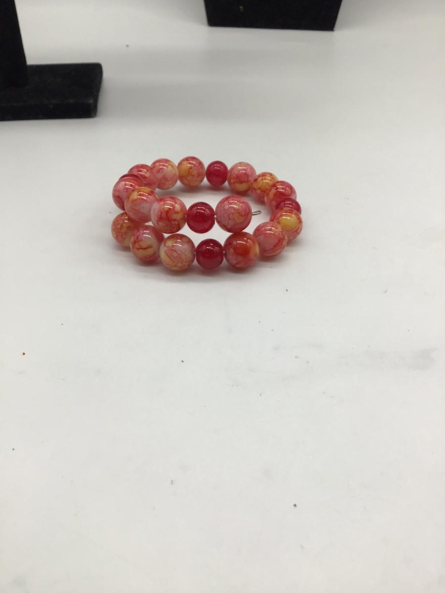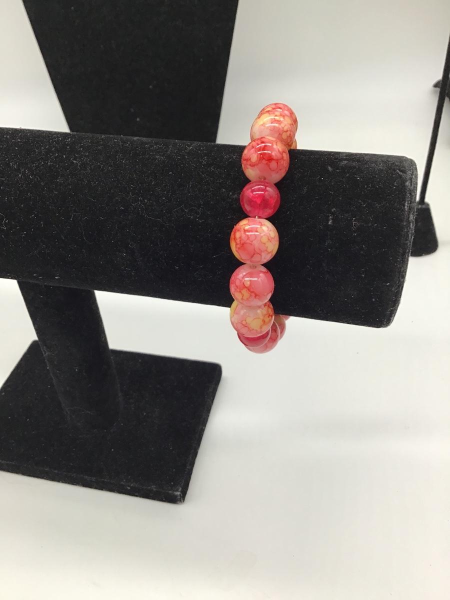 Light pink, hot pink and yellow beaded bracelet