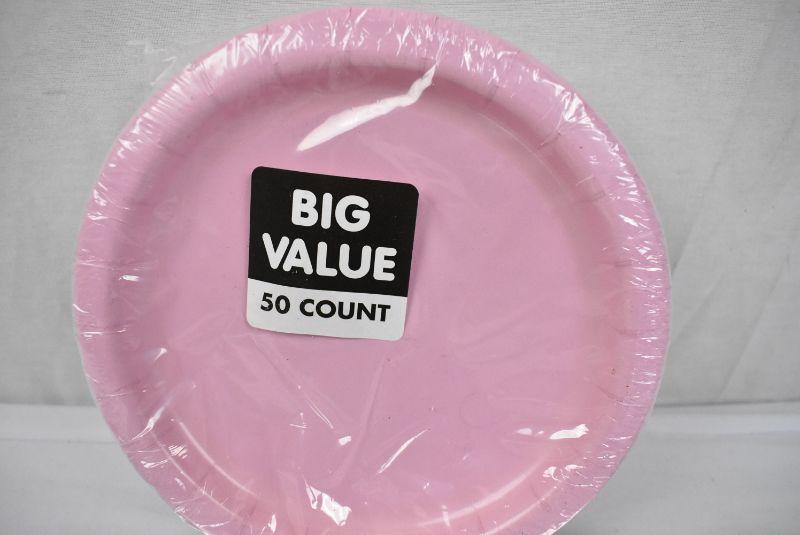 Light Pink Paper Dessert Plates, 7in, 50ct & 10 Tart Molds Stainless Steel Cupcake Mold Thickened Reusable Cake Cookie Mold Tin Tool Baking Cups (no packaging) - New