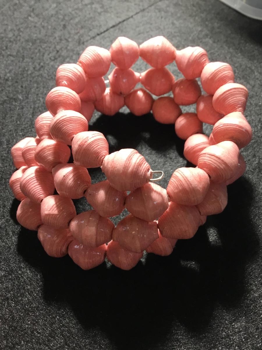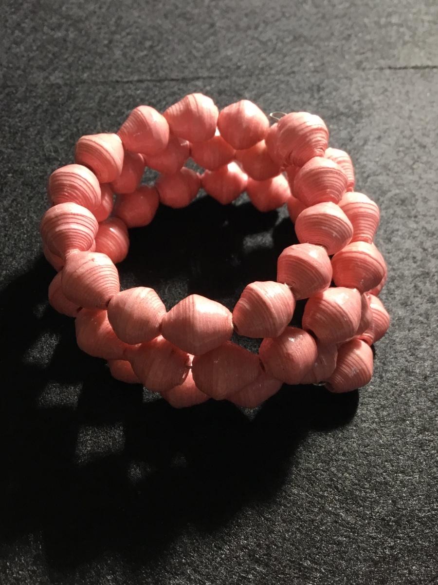 Light pink plastic beaded on wire bracelet