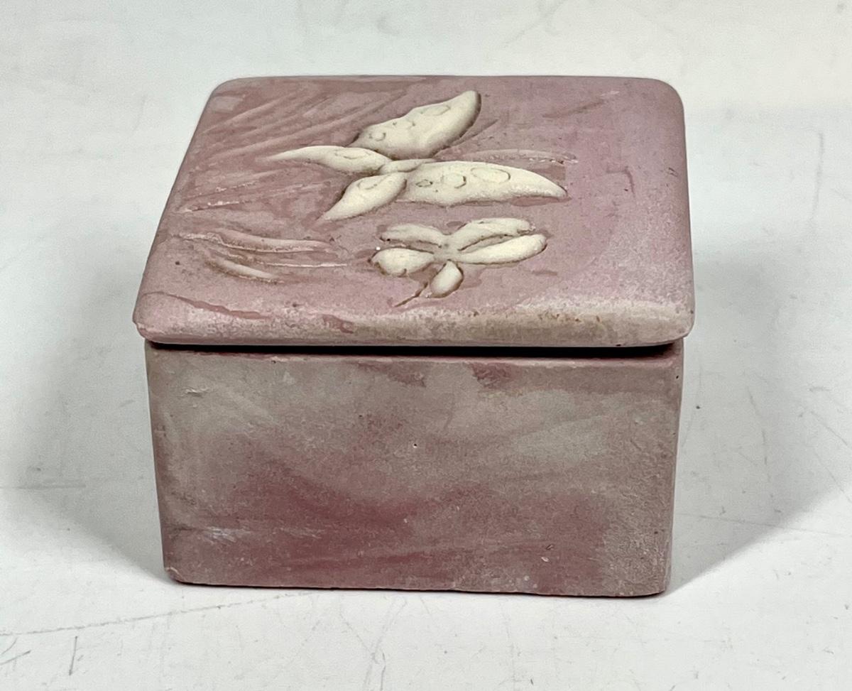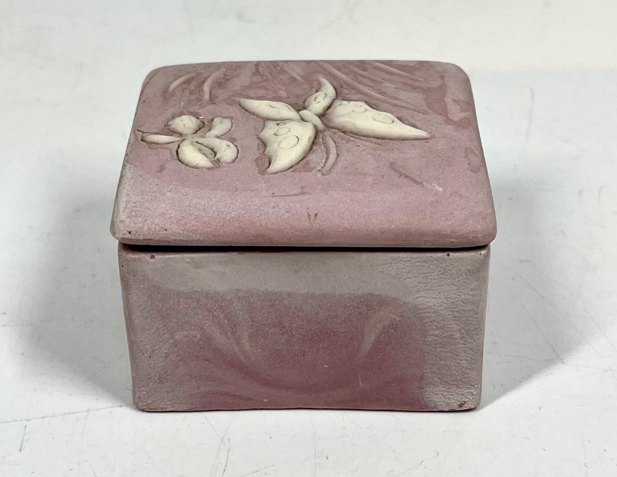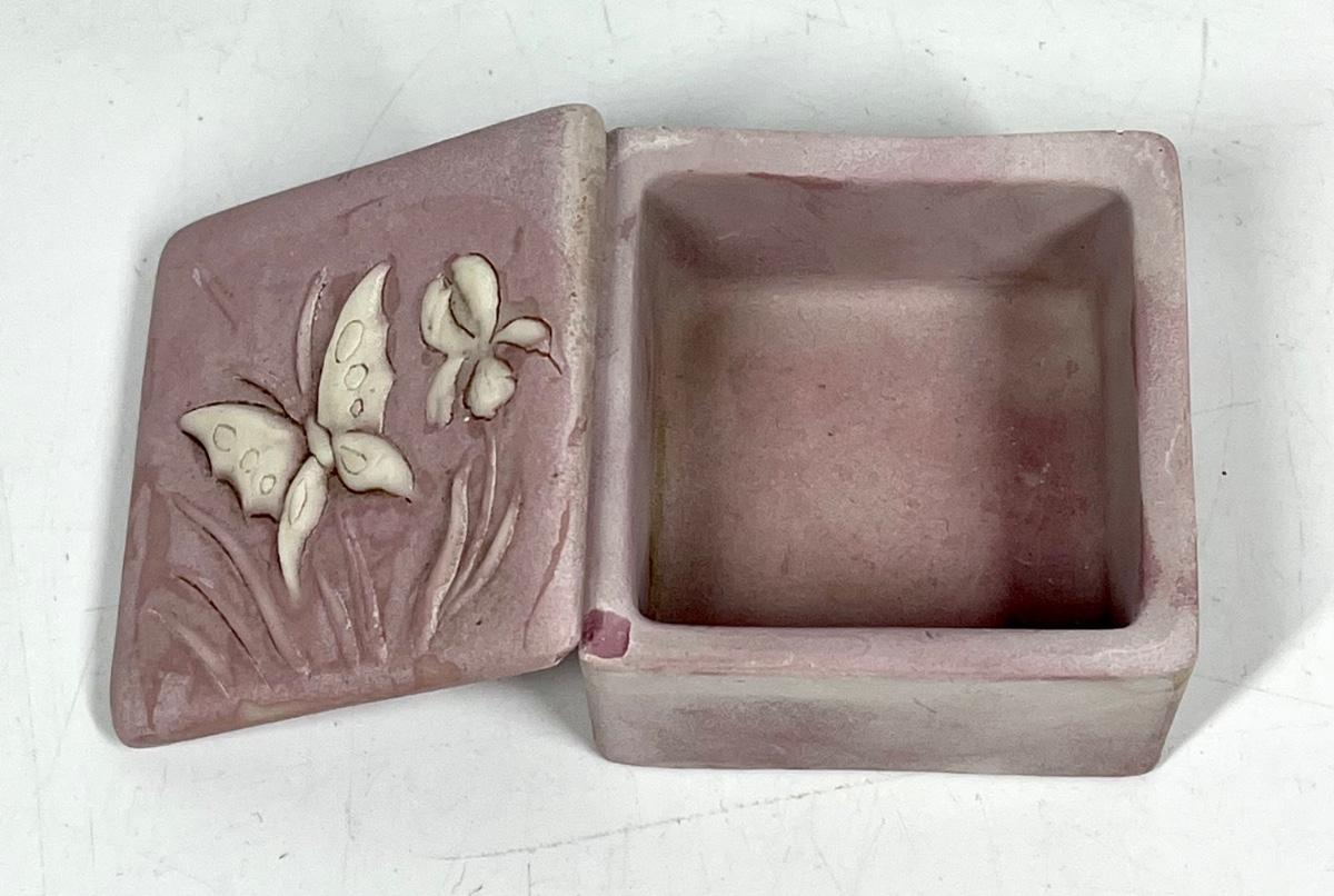 Pale Purple & White Plaster Resin Trinket Box with Butterfly & Iris on Top